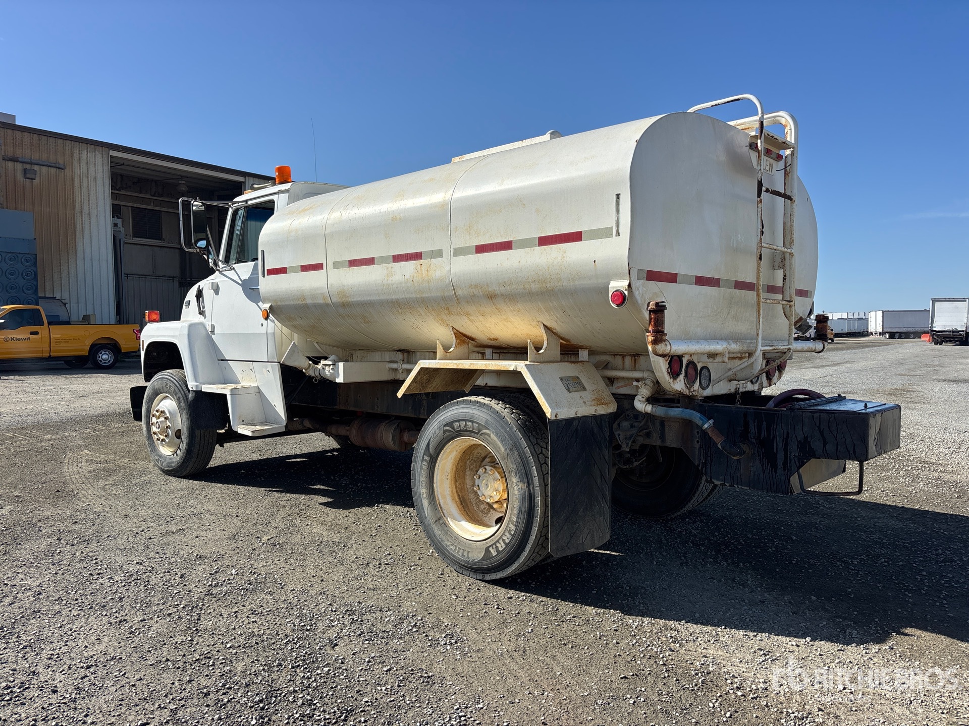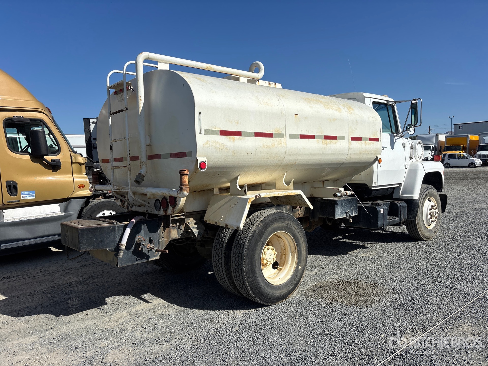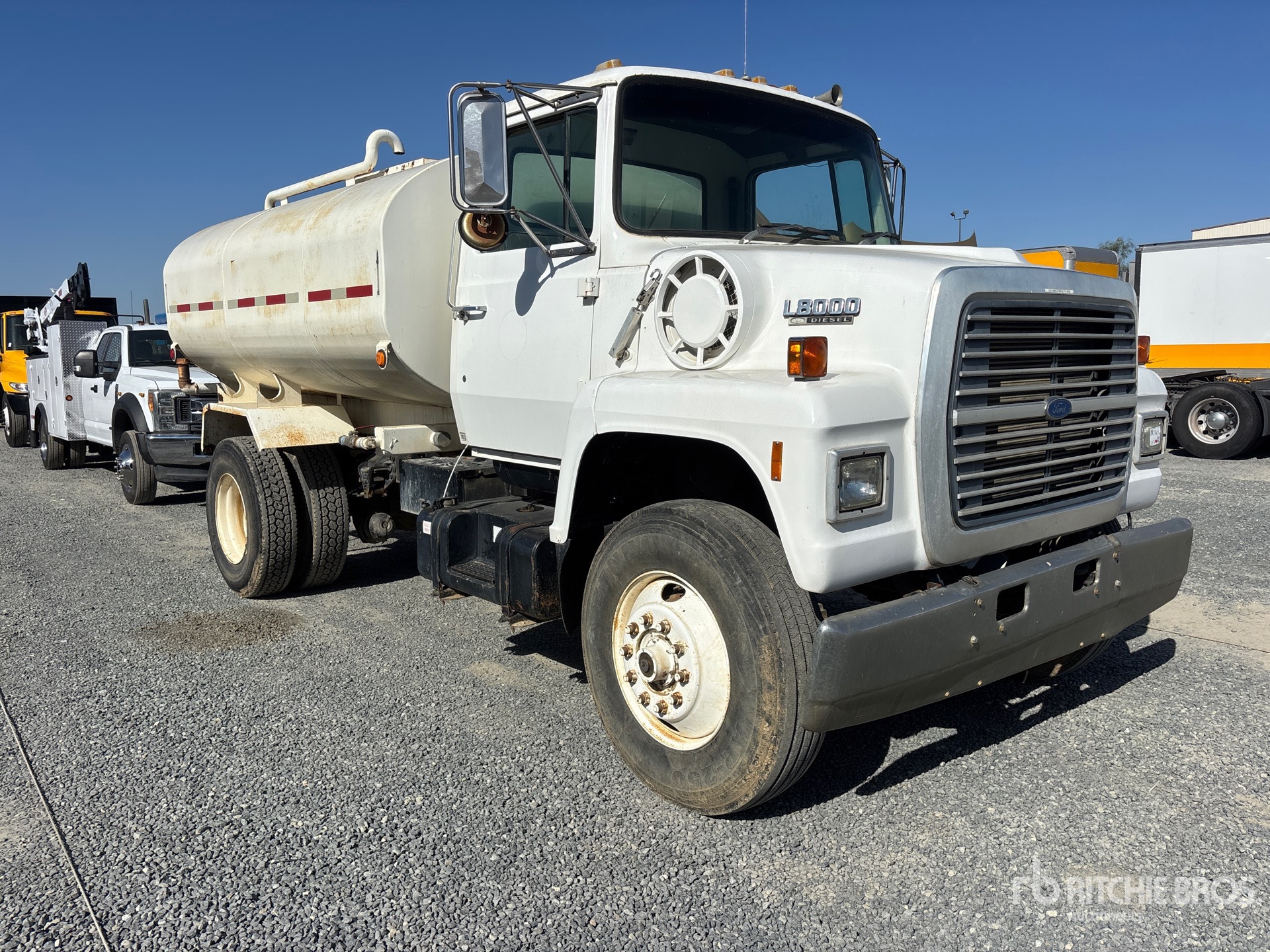 Ford 6 Cylinder Diesel Engine, 7813 Engine hrs, 11R22.5 Front Tires, 11R22.5 Rear Tires, Spring Suspension, 163 in Wheelbase, PTO, Valew 2000 gal Steel Tank, PTO Driven Pump, 7 ft 4 in, Spray Bar, Rear Spray, Side Spray