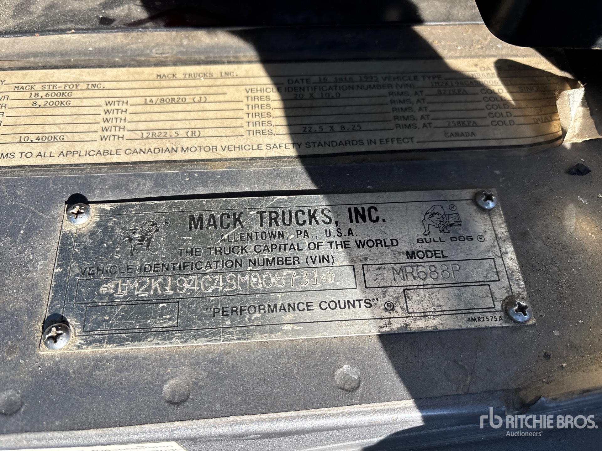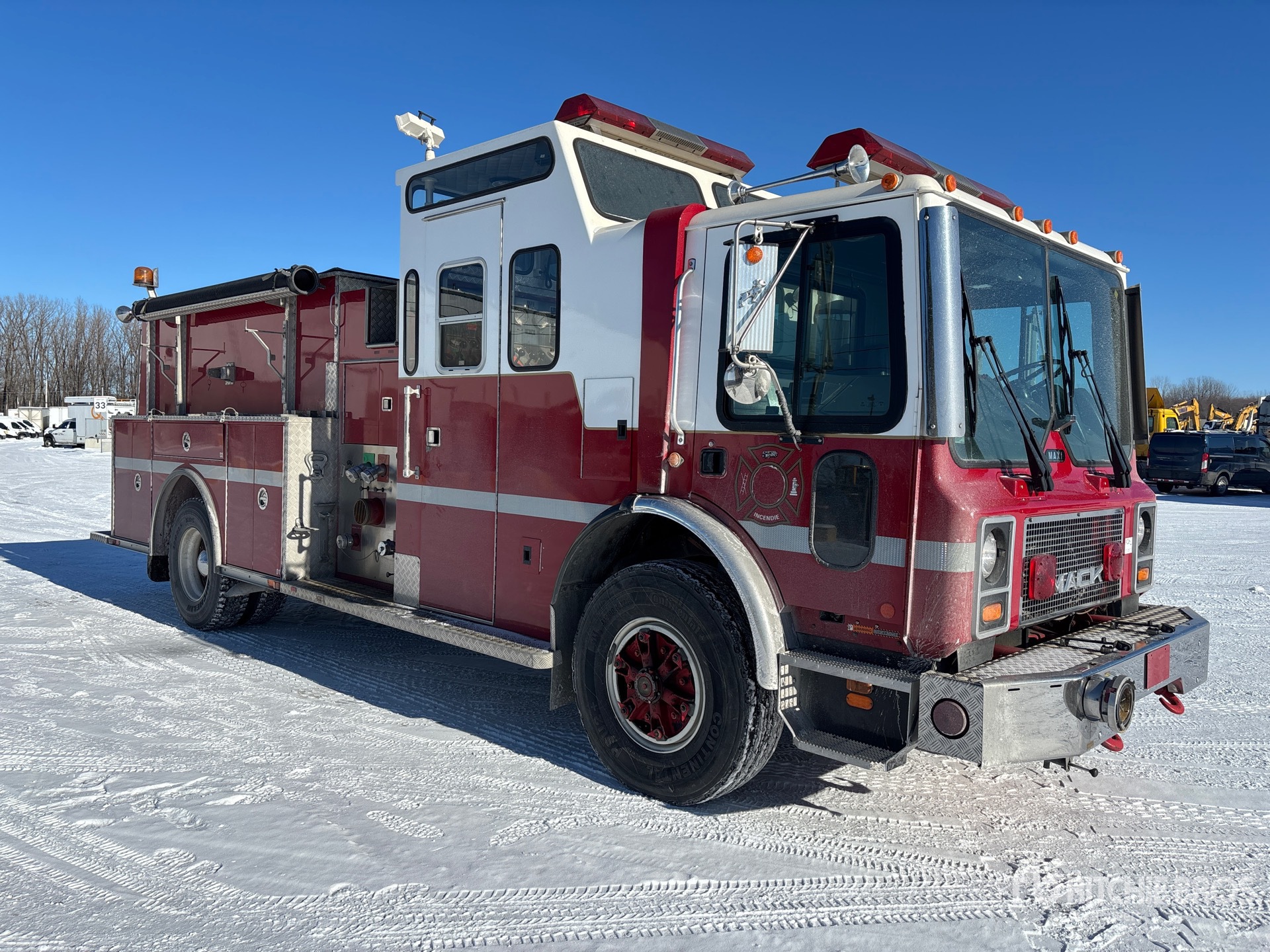 Located in Lane 10 Spot 33, 3805 Engine hrs, Retarder, Allison Automatic Transmission, 18000 lb Front Axle, 23000 lb Rears, 18600 kg GVWR, Mack E7 6 Cylinder Diesel 300 hp Engine, 1995 US EPA Label, 315/80R22.5 Front Tires, 12R22.5 Rear Tires, Spring Suspension, 198 in Wheelbase, Maxi-Metal 23 ft Body, Darley Champion 6 in PTO Driven Pump