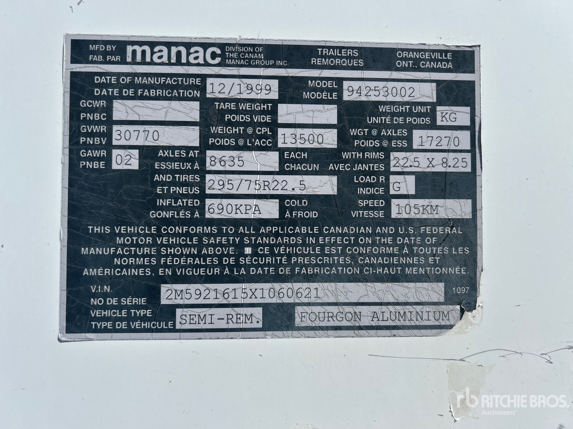 Air Ride Sliding Suspension, Hardwood Floor, Swing Door, 295/75R22.5 Tires 30770 kg GVWR