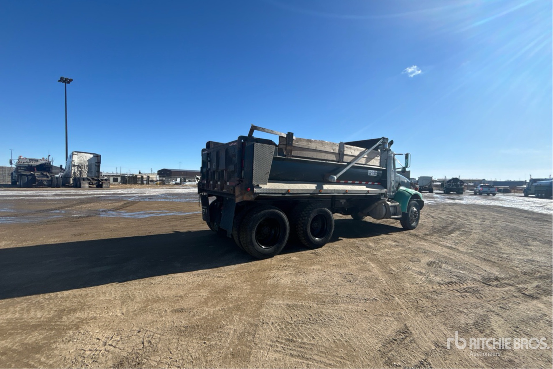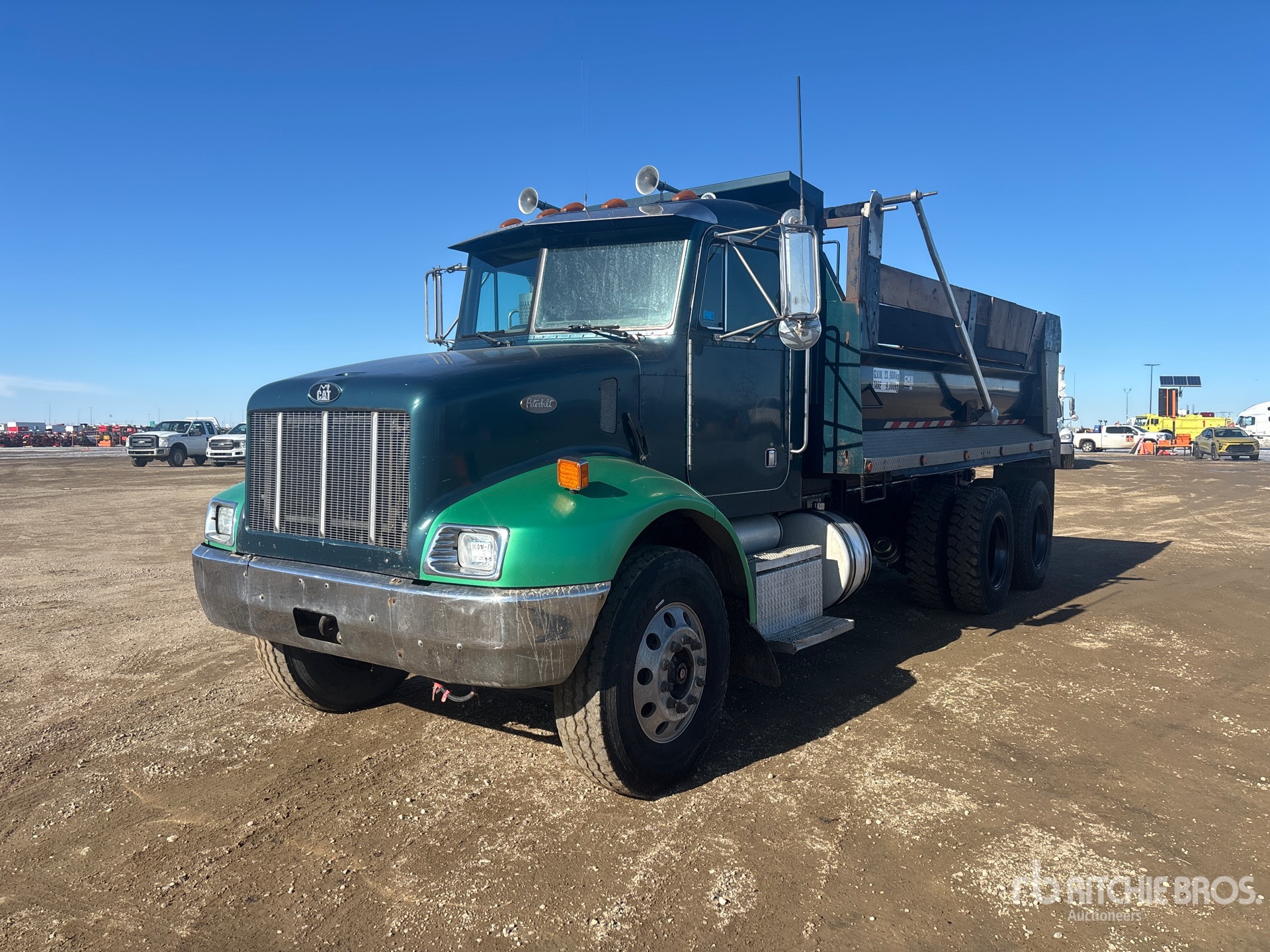 Cat 3126 6 Cylinder 7.2 L Diesel 240 hp Engine, 1999 US EPA Label, 3150 Engine hrs, Engine Brake, Allison Automatic Transmission, Differential Lock, 14600 lb Front Axle, 40000 lb Rears, 54600 lb GVWR, 315/80R22.5 Front Tires, 11R22.5 Rear Tires, Hendrickson Rubber over Walking Beam Suspension, 215 in Wheelbase, PTO, 15 ft Long x 4 ft High Steel Body