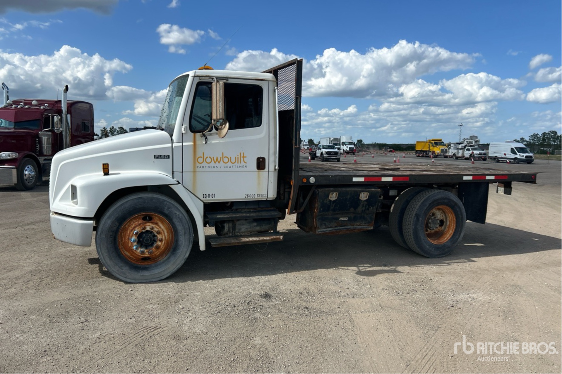 Cat 6 Cylinder 7.2 L Diesel 340 hp Engine, 2001 US EPA Label, Automatic Transmission, 8000 lb Front Axle, 17500 lb Rears, 25500 lb GVWR, 11R22.5, Spring Suspension, 168 in Wheelbase, 14 ft x 96 in Bed, Container Pins