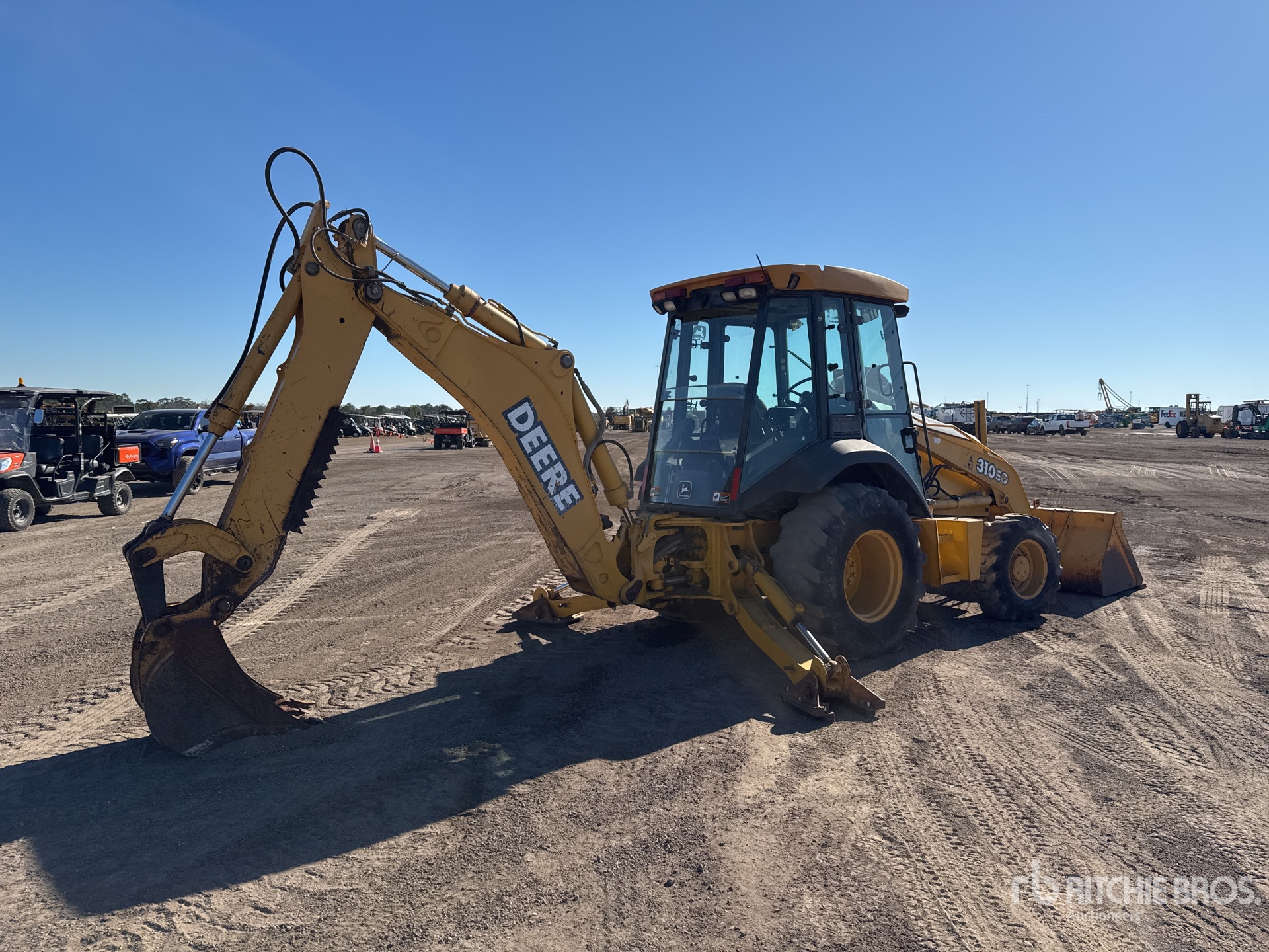 Enclosed Cab, 85 in Loader Bucket, Extendable Stick, 24 in Backhoe Digging Bucket
