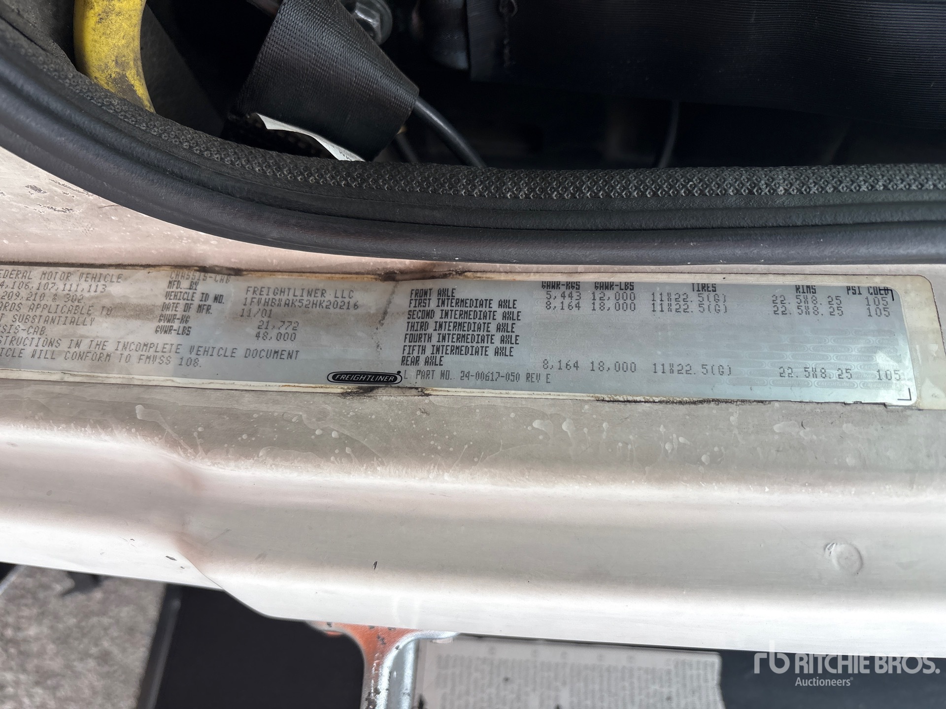 Located in Lane 18 Spot 66, Cat 6 Cylinder 7.2 L Diesel 330 hp Engine, 2001 US EPA Label, Eaton Fuller 10-Speed Manual Transmission, 12000 lb Front Axle, 36000 lb Rears, 48000 lb GVWR, 11R22.5, Spring Suspension, 260 in Wheelbase, 24 ft x 96 in Bed
