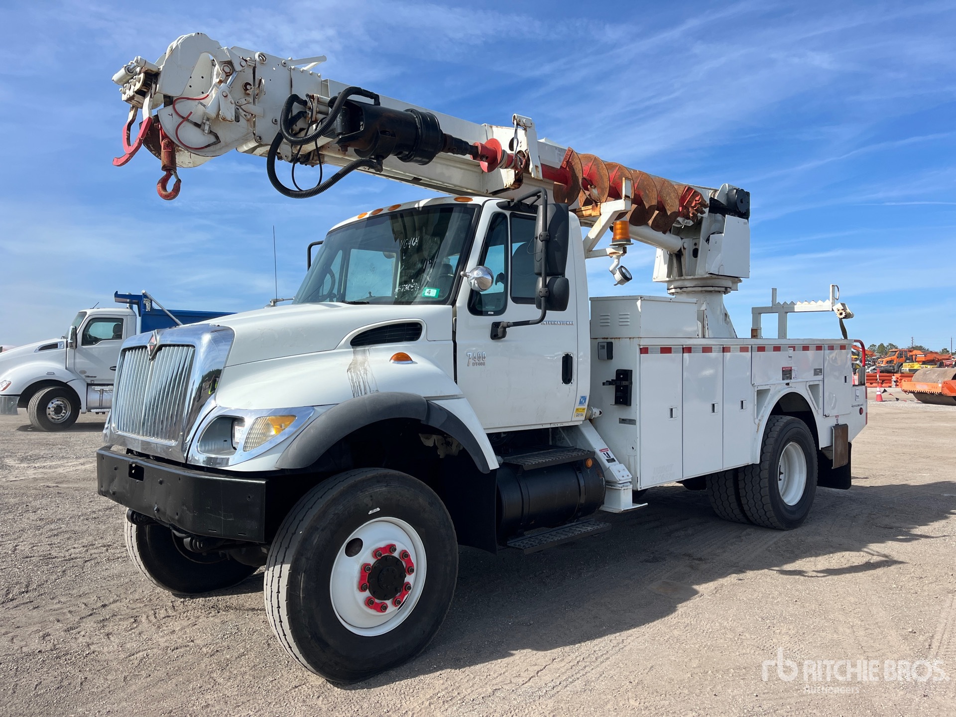 Diesel Engine, 14613 Engine hrs, Automatic Transmission, Differential Lock, 12R22.5 Front Tires, 315/80R22.5 Rear Tires, Spring Suspension, 185 in Wheelbase, 35 ft Sheave Height, 26790 lb Capacity, Rear Mounted, 12 in Auger, Pole Guide, Turret Mounted Winch, 14 ft 6 in Body, A-Outriggers, Rear Outriggers