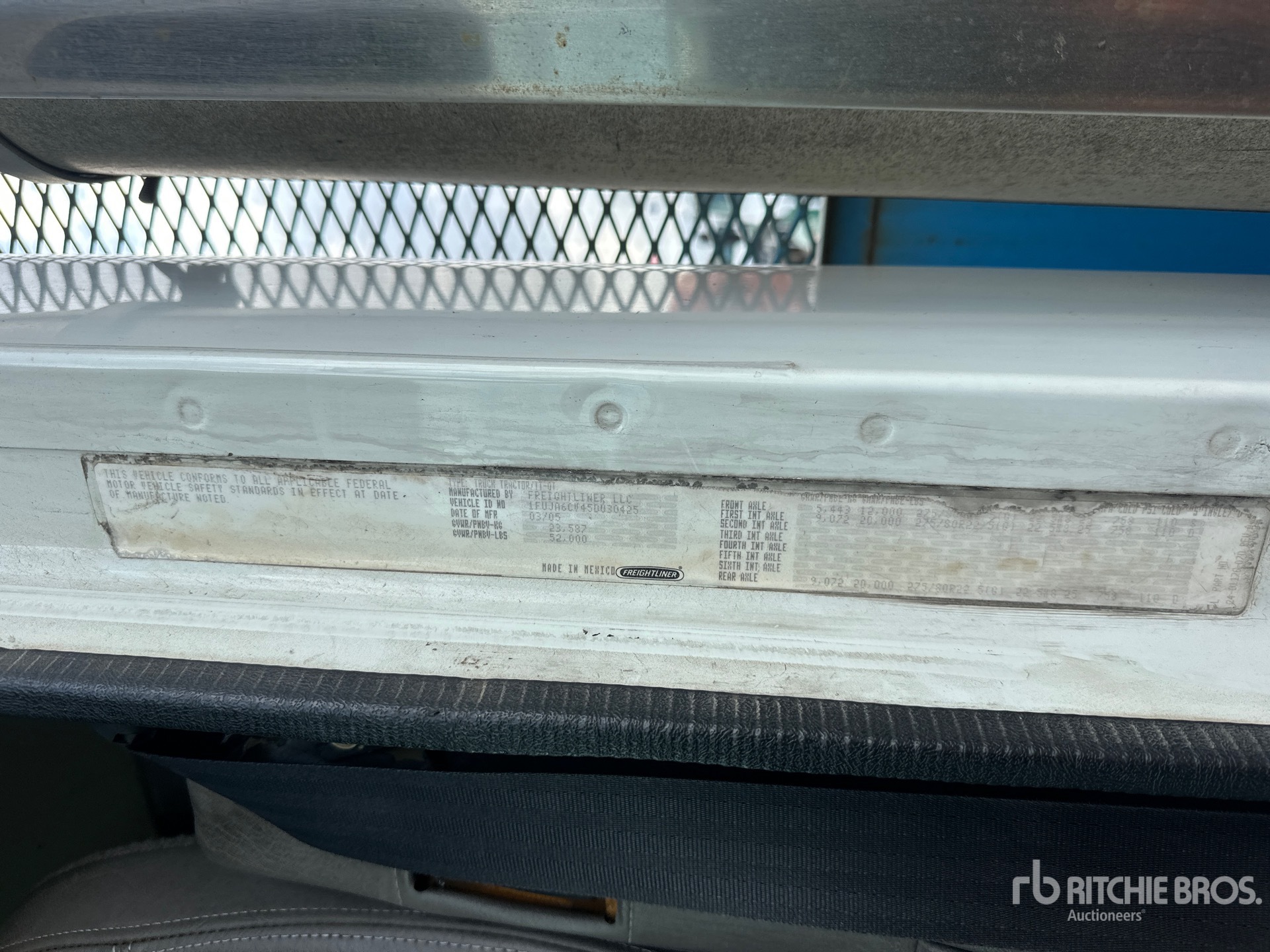 Mercedes-Benz 6 Cylinder Diesel Engine, 2005 US EPA Label, 16629 Engine hrs, Engine Brake, Eaton Fuller 10-Speed Manual Transmission, 12000 lb Front Axle, 40000 lb Rears, 52000 lb GVWR, Air Ride Cab, Aluminum Wheels, 295/75R22.5 Front Tires, 295/75R22.5 Rear Tires, Airliner Air Ride Suspension, 301 in Wheelbase, 26 ft x 96 in Bed