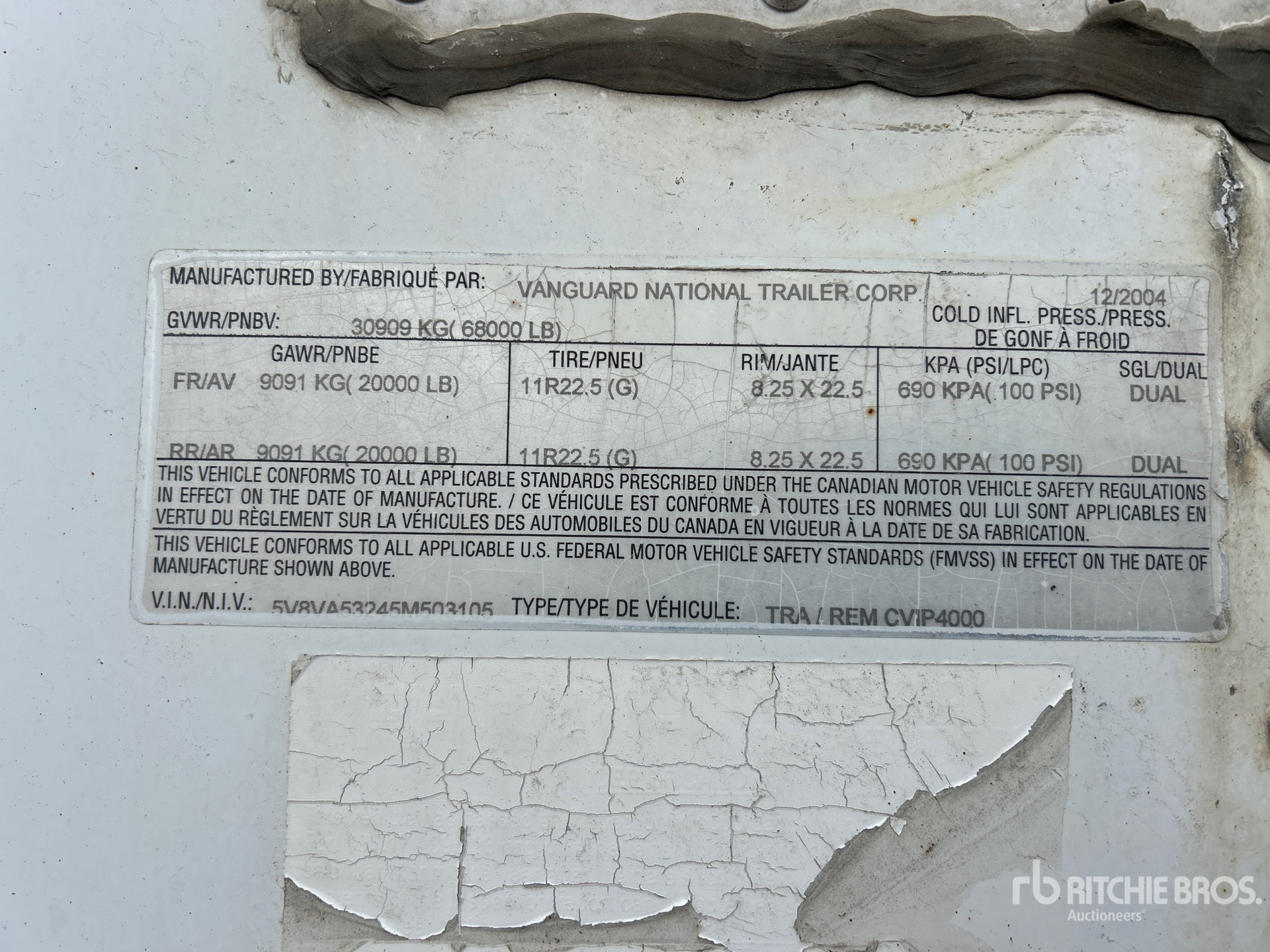 Air Ride Sliding Suspension, Hardwood Floor, Swing Door, 11R22.5 Tires, 68000 lb GVWR