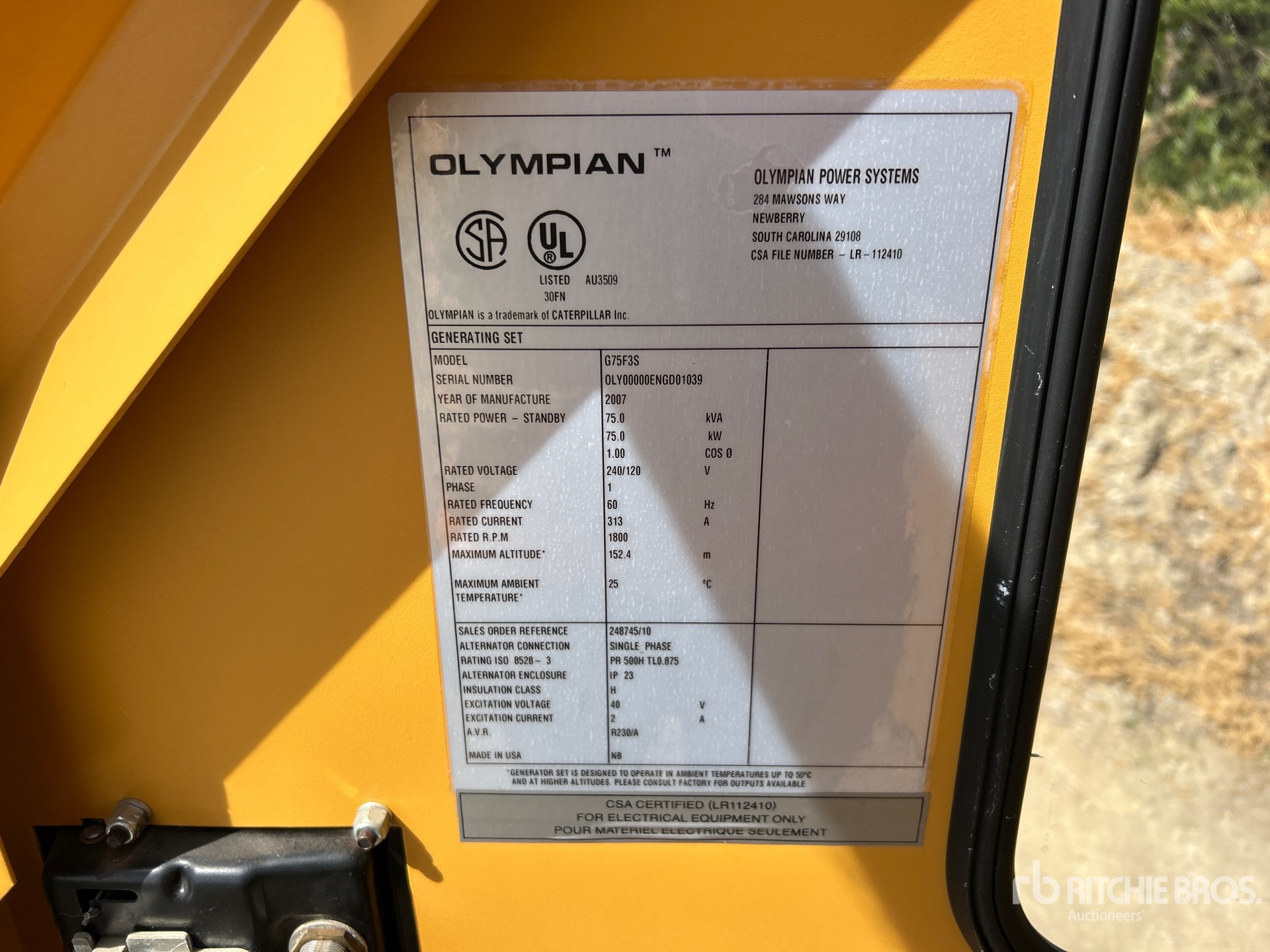 Ford WSG1068 V10 Engine, 75 kVA,/75 kW, Rated Single Phase Output, 240 V / 120 V Rated Voltage