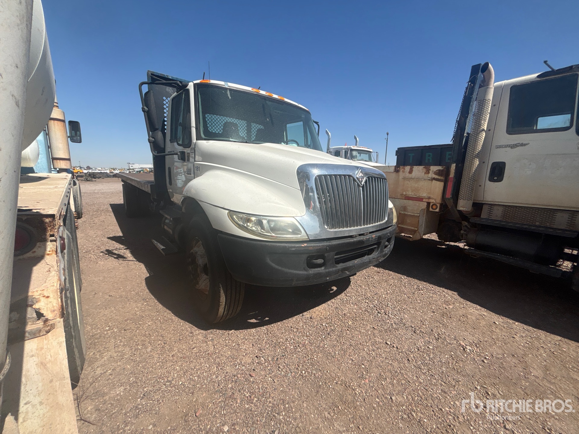 International 6 Cylinder 7.6 L Diesel Engine, 7294 Engine hrs, Manual Transmission, 10000 lb Front Axle, 19000 lb Rears, 29000 lb GVWR, 11R22.5, Spring Suspension, 258 in Wheelbase, 24 ft x 96 in Bed, Pintle Hitch