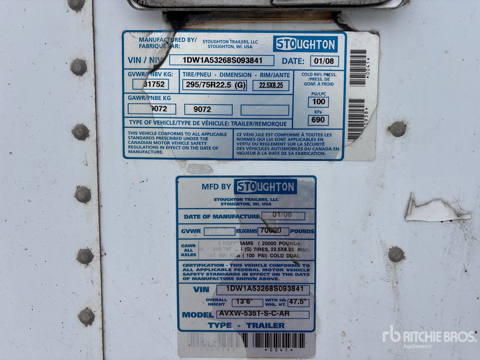 Air Ride Sliding Suspension, Side Skirts, Hardwood Floor, Swing Door, 295/75R22.5 Tires 70000 lb GVWR