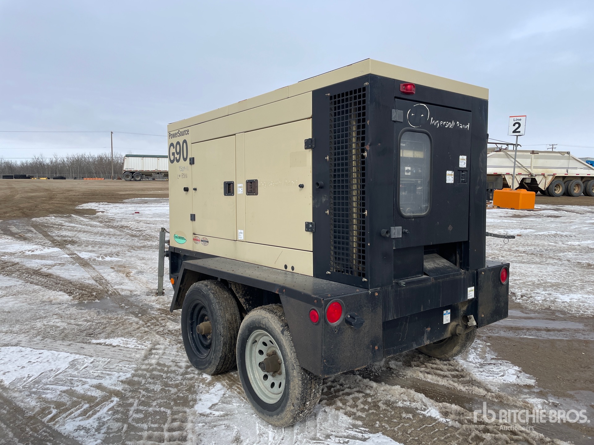 2007 US EPA Label, CARB Compliant, John Deere 4 Cylinder 94 kW 4.5 L Diesel Engine, 480 V / 277 V / 208 V Rated Voltage, 240 V / 120 V Rated Voltage, 240 V & 120 V Receptacles, Sound Attenuated, Bottom Mounted Fuel Tank, Lunette Ring Carrier Trailer
