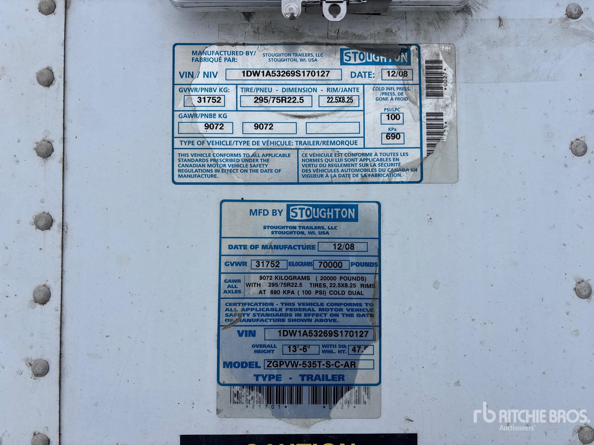 Air Ride Sliding Suspension, Side Skirts, Hardwood Floor, Swing Door, 295/75R22.5 Tires 70000 lb GVWR