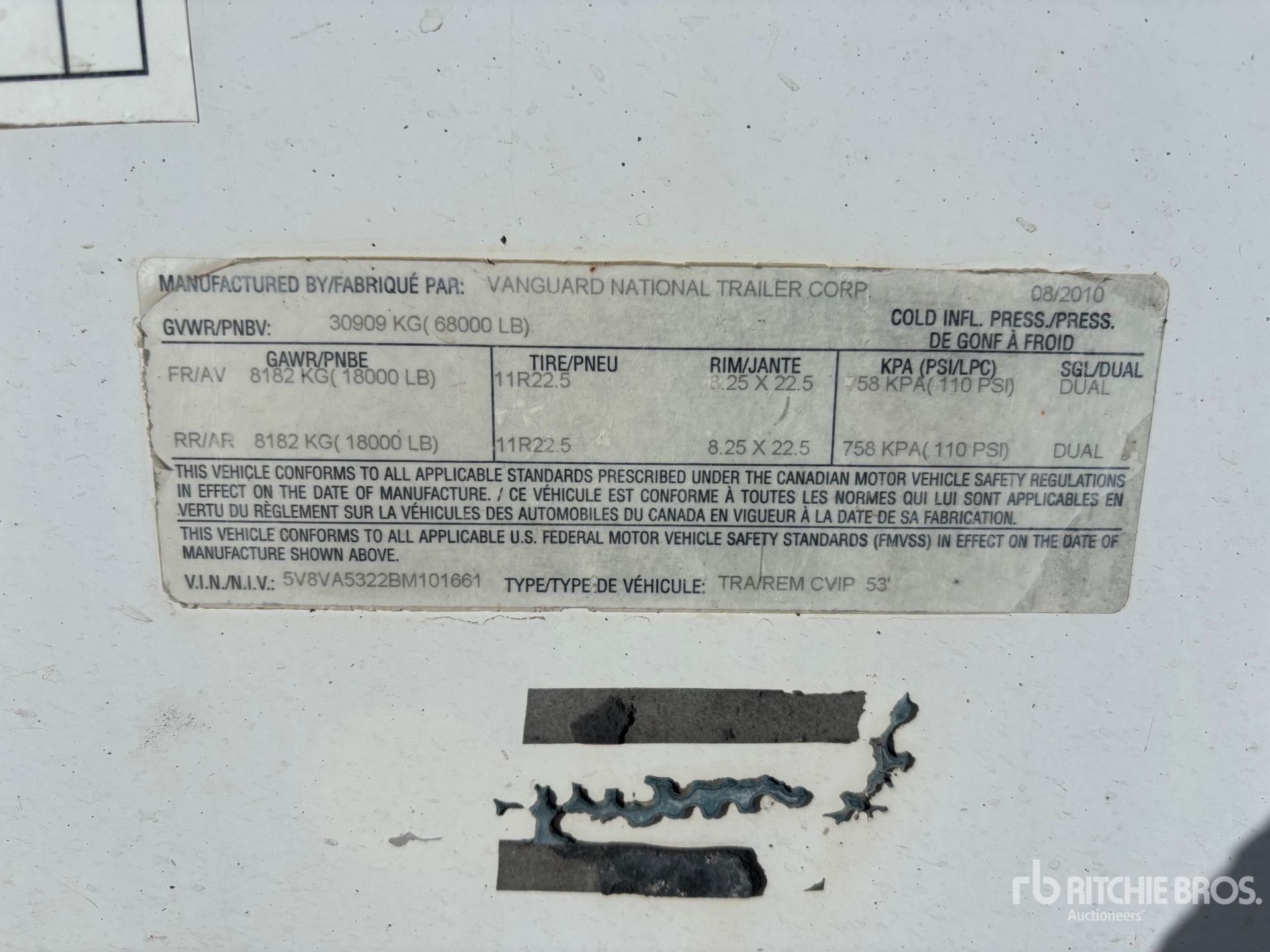Air Ride Sliding Suspension, Hardwood Floor, Swing Door, 295/75R22.5 Tires 68000 lb GVWR