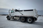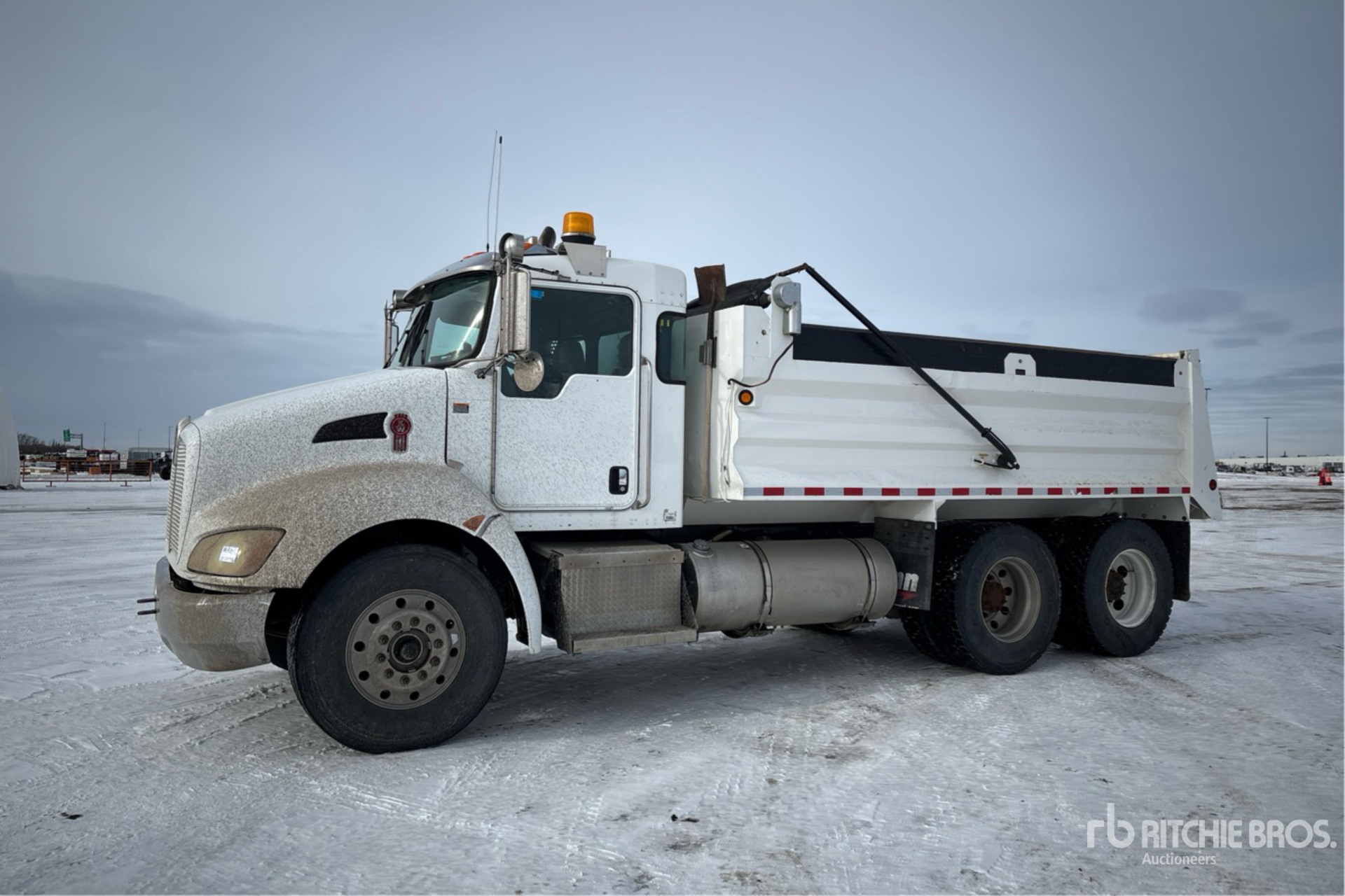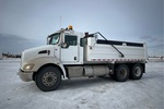 Paccar PX-8 6 Cylinder 8.3 L Diesel 300 hp Engine, 2011 US EPA Label, 18978 Engine hrs, Engine Brake, Allison 3500 Automatic Transmission, Double Differential Locks, 14596 lb Front Axle, 39990 lb Rears, Spicer DSP41P Drive Axles, 5.57:1 Axle Ratio, 54586 lb GVWR, Aluminum Front Wheels, 315/80R22.5 Front Tires, 11R22.5 Rear Tires, Hendrickson Air Ride Suspension, 190 in Wheelbase, PTO, 15 ft Long x 3 ft 6 in High Steel Body, Electric Roll Tarp, Rear Hydraulics, Pintle Hitch