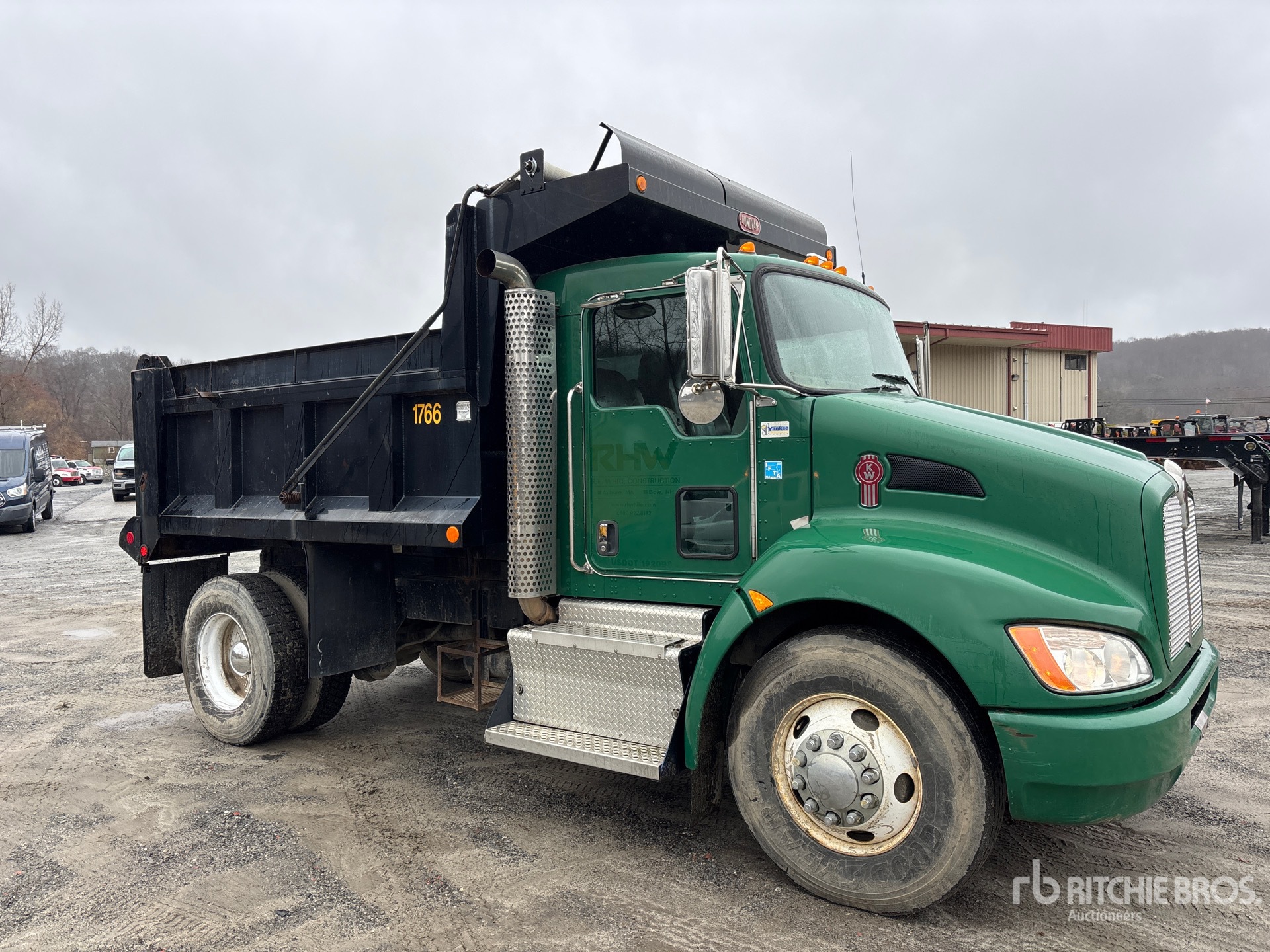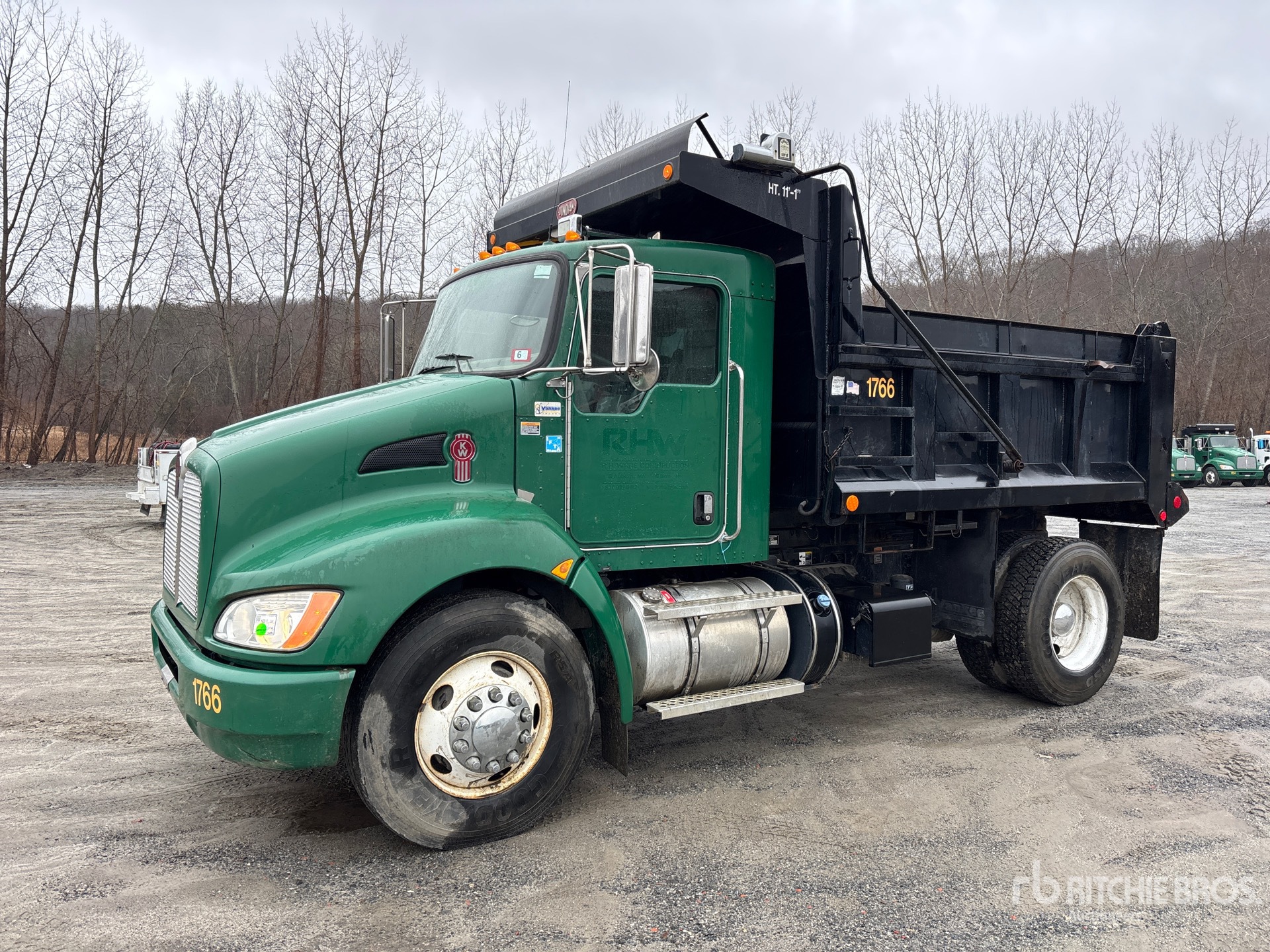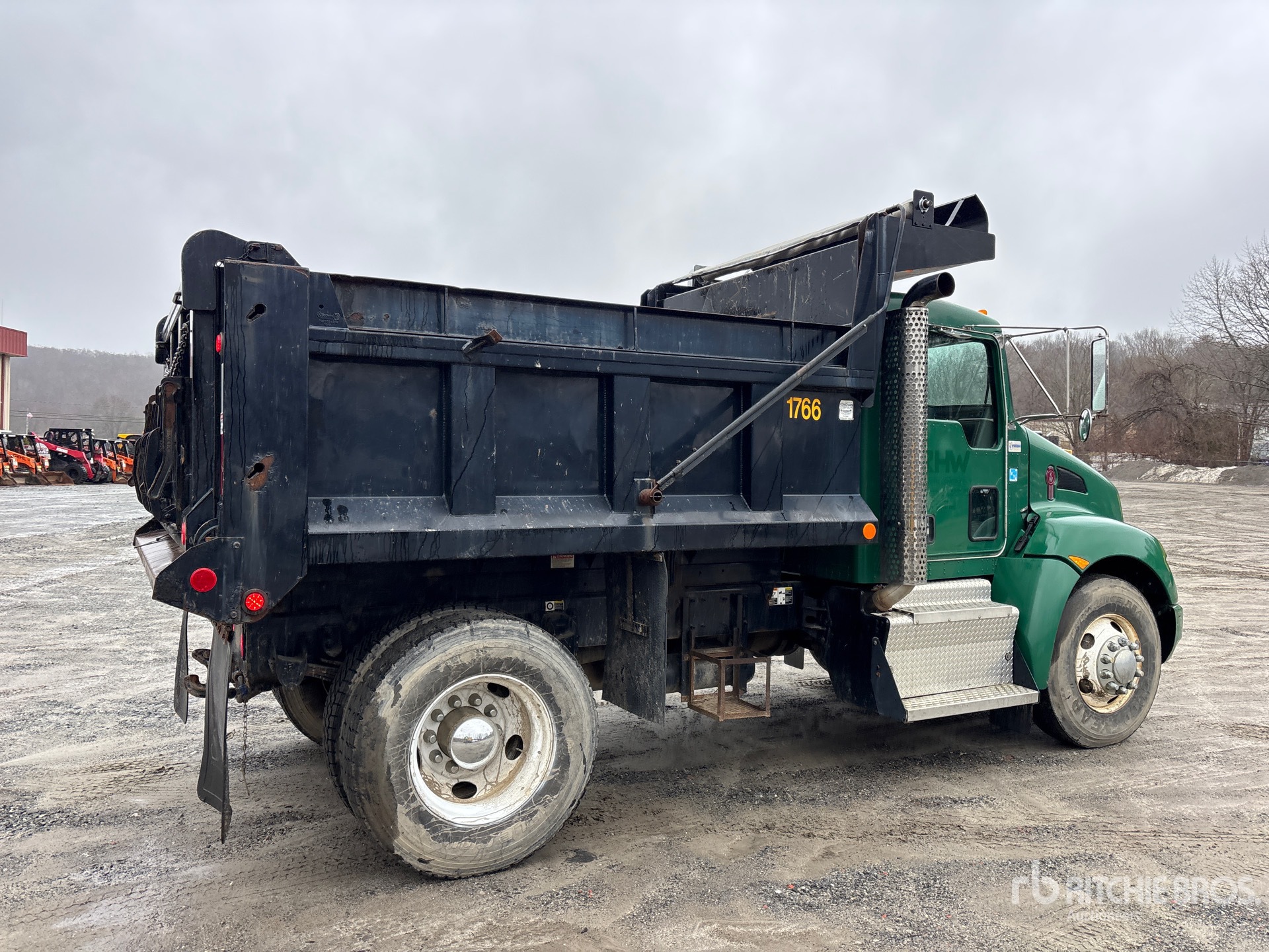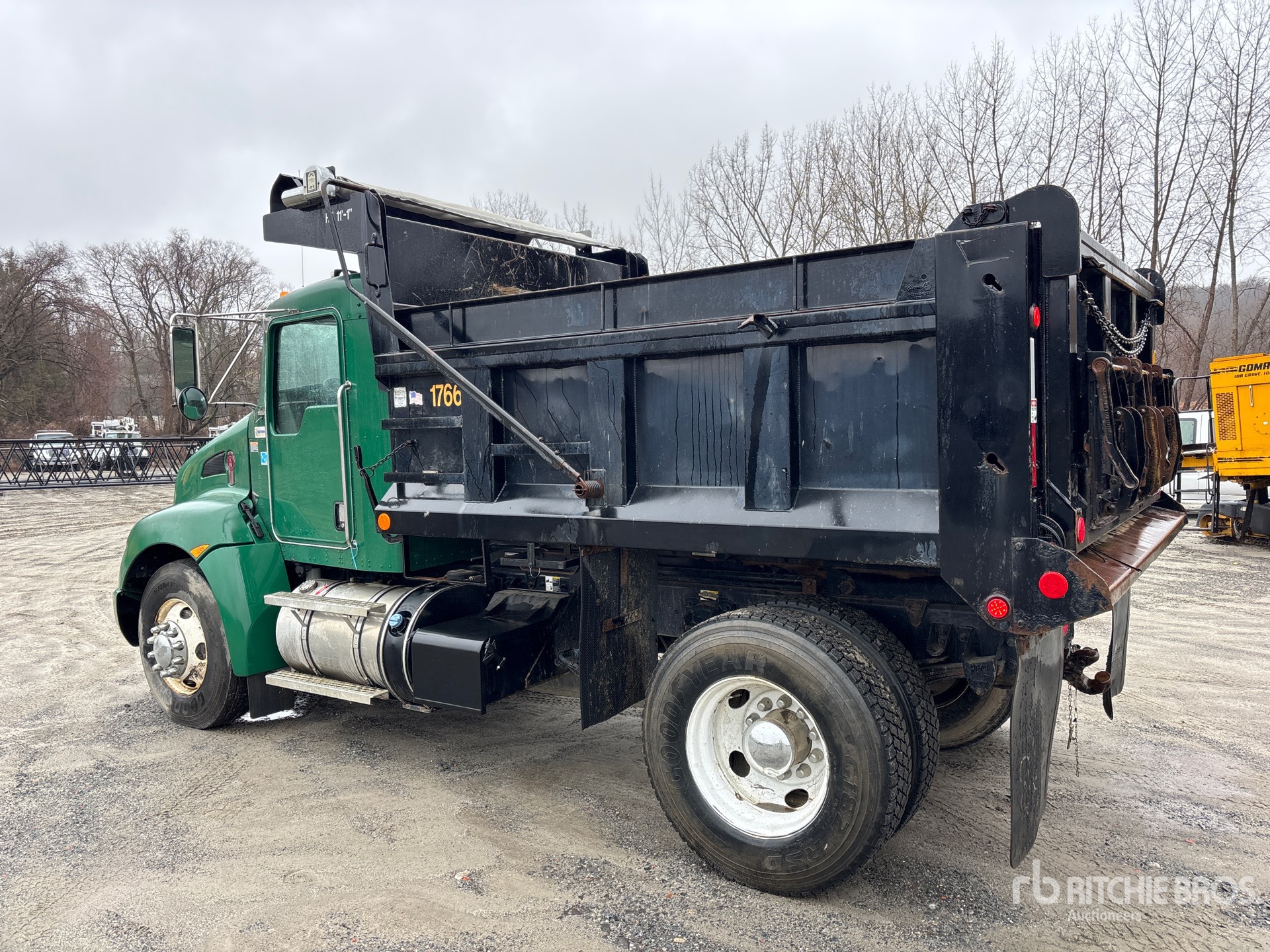 Located in Lane 6 Spot 32, Paccar PX-6 6 Cylinder 6.7 L Diesel 325 hp Engine, 2012 US EPA Label, CARB Compliant, Requires Diesel Exhaust Fluid, 4612.6 Engine hrs, Engine Brake, Allison 3000 Automatic Transmission, 10000 lb Front Axle, 23000 lb Rears, Dana S23-170 Drive Axles, 5.57:1 Axle Ratio, 33000 lb GVWR, 11R22.5, Spring Suspension, 156 in Wheelbase, PTO, Godwin 10 ft Long x 3 ft 2 in High Steel Body, Electric Roll Tarp, Triple Tailgate Chutes, Pintle Hitch