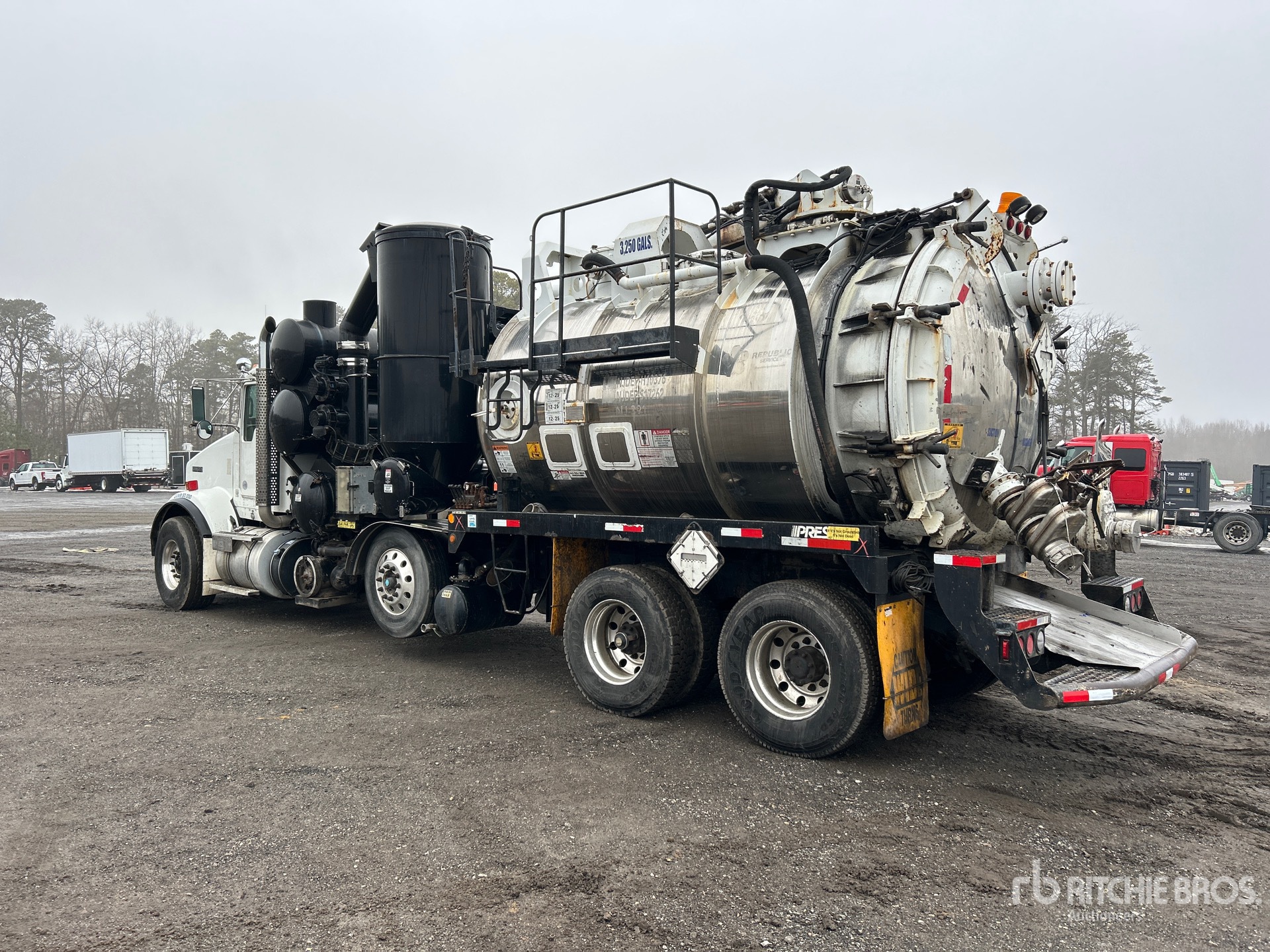 Located in Lane 44 Spot 45, Cummins ISX15 6 Cylinder 15 L Diesel 455 hp Engine, 2012 US EPA Label, Eaton Fuller FRO-16210C 10-Speed Manual Transmission, 20000 lb Front Axle, 46000 lb Rears, 4.10:1 Axle Ratio, 78350 lb GVWR, Air Ride Cab, Aluminum Wheels, 425/65R22.5 Front Tires, 11R22.5 Rear Tires, Double Frame, Spring over Walking Beam Suspension, 300 in Wheelbase, Steel Debris Tank, Hoist, Vibrator, Full Open Tailgate, Hydraulic Tailgate Locks, Boom, 6 in Suction Hose, PTO Driven Pump, Cordless Remote Control