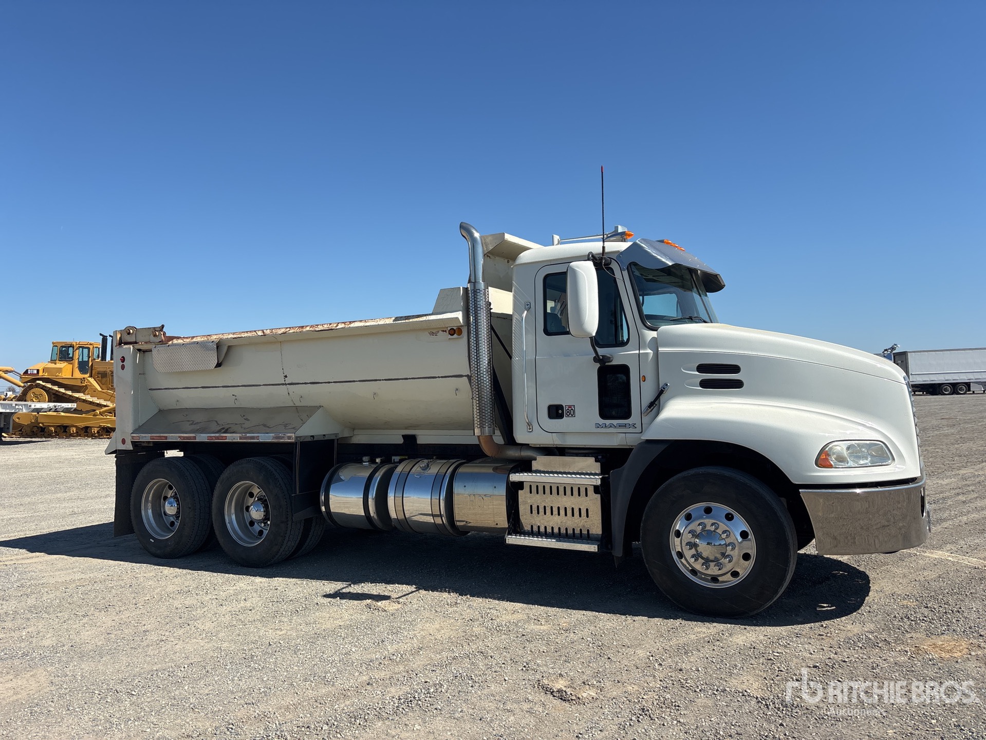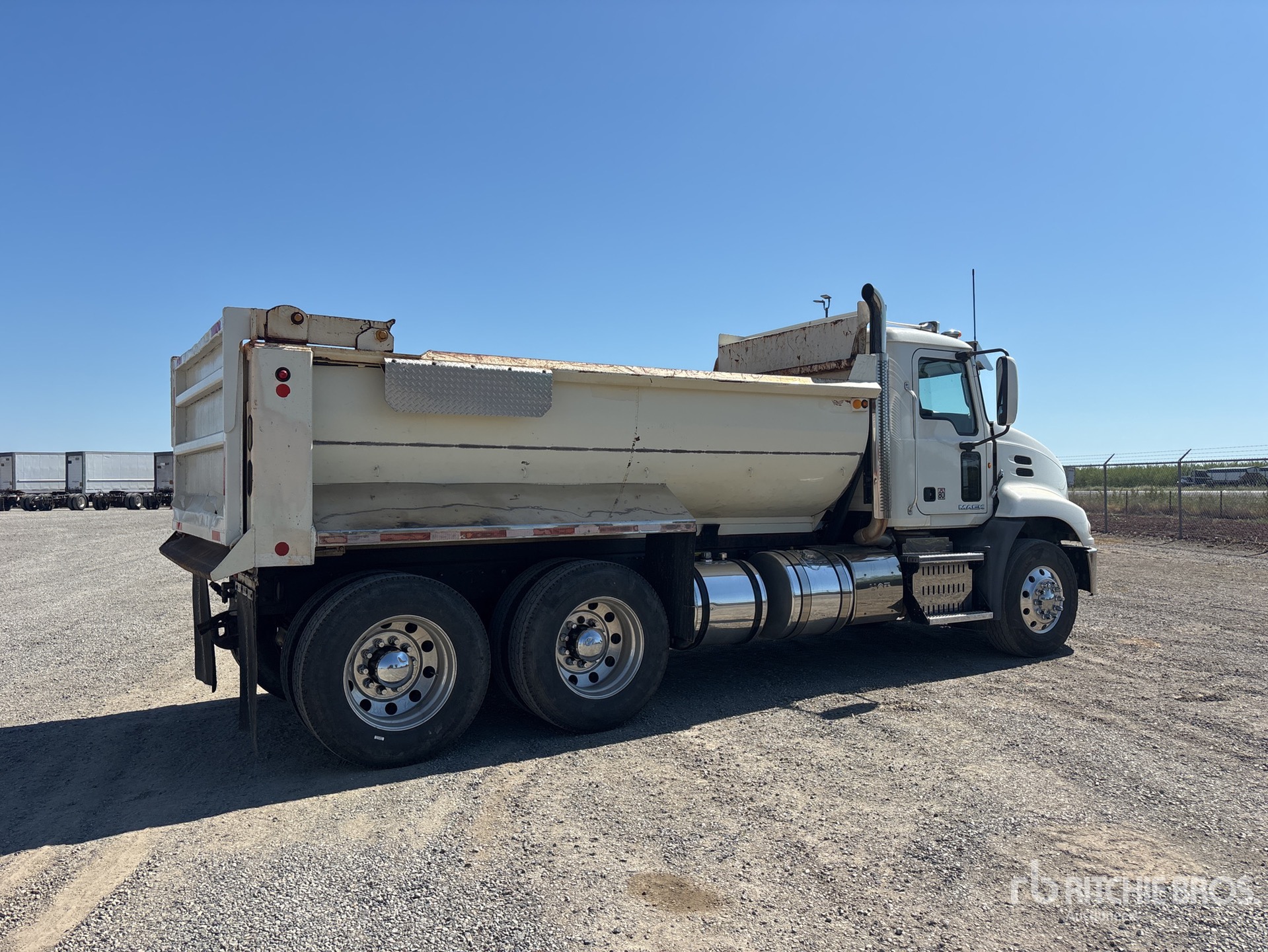 Mack 6 Cylinder Diesel Engine, Requires Diesel Exhaust Fluid, Engine Brake, 10-Speed Manual Transmission, 12000 lb Front Axle, 38000 lb Rears, 50000 lb GVWR, Aluminum Wheels, 315/80R22.5 Front Tires, 11R24.5 Rear Tires, Spring Suspension, 180 in Wheelbase, PTO, 15 ft Long x 4 ft High Body