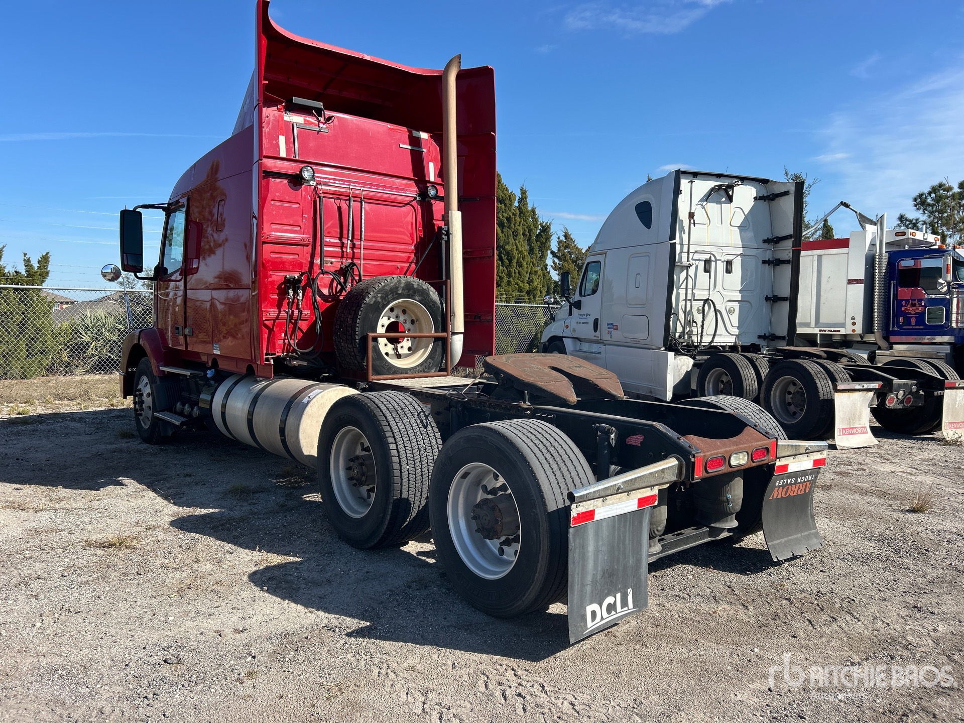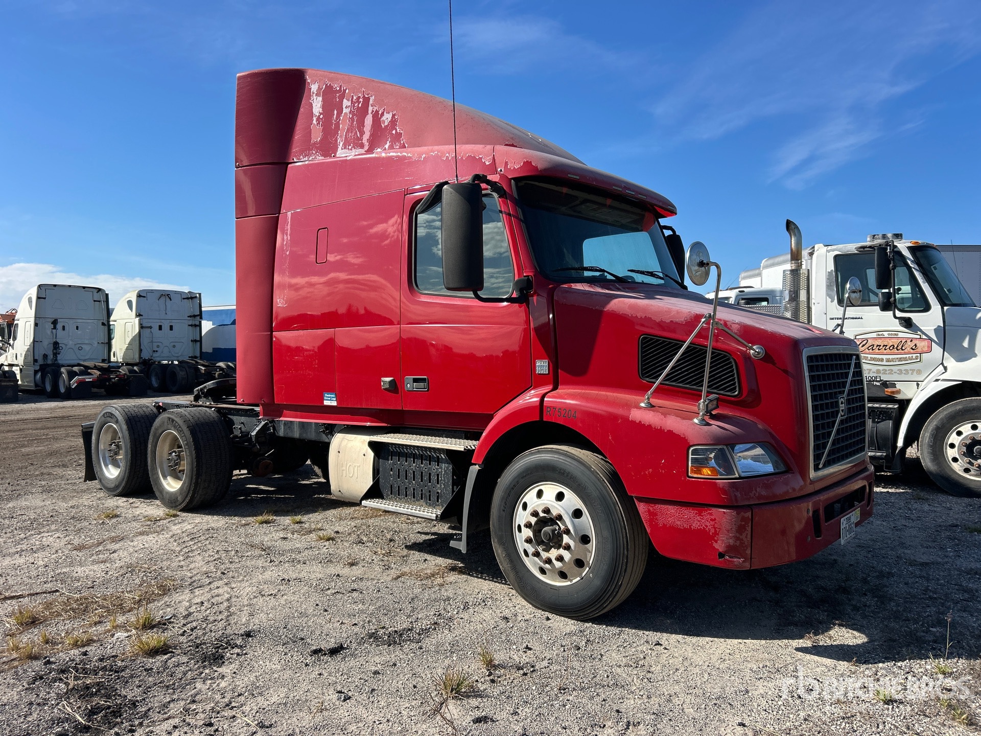 Volvo D11H 385 hp Engine, 2012 US EPA Label, Volvo AT2612D 12-Speed Automated Transmission, 12350 lb Front Axle, 38000 lb Rears, 50350 lb GVWR, Engine Brake, 61 in Mid Roof Sleeper Cab, Bunk Beds, 207 in Wheelbase, Air Suspension, Aluminum Wheels, 295/75R22.5 Front Tires, 445/50R22.5 Super Singles Rear Tires, Air Sliding 5th Wheel
