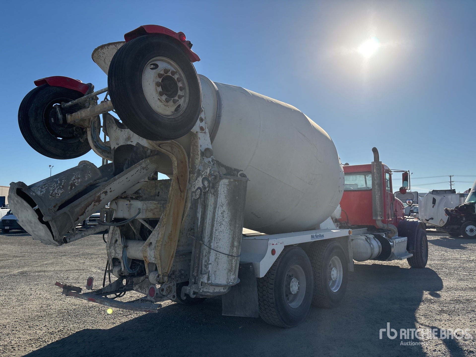 Cummins ISX12 6 Cylinder 11.9 L Diesel 320 hp Engine, 2013 US EPA Label, Requires Diesel Exhaust Fluid, 25672 Engine hrs, Allison Automatic Transmission, 20000 lb Front Axle, 52200 lb Rears, 72200 lb GVWR, 425/65R22.5, Trailing Tag Axle, Dual Steering Boxes, Walking Beam Suspension, 250 in Wheelbase, McNeilus Mixer Unit, 3 Removable Chutes, Remote Control w/Cord