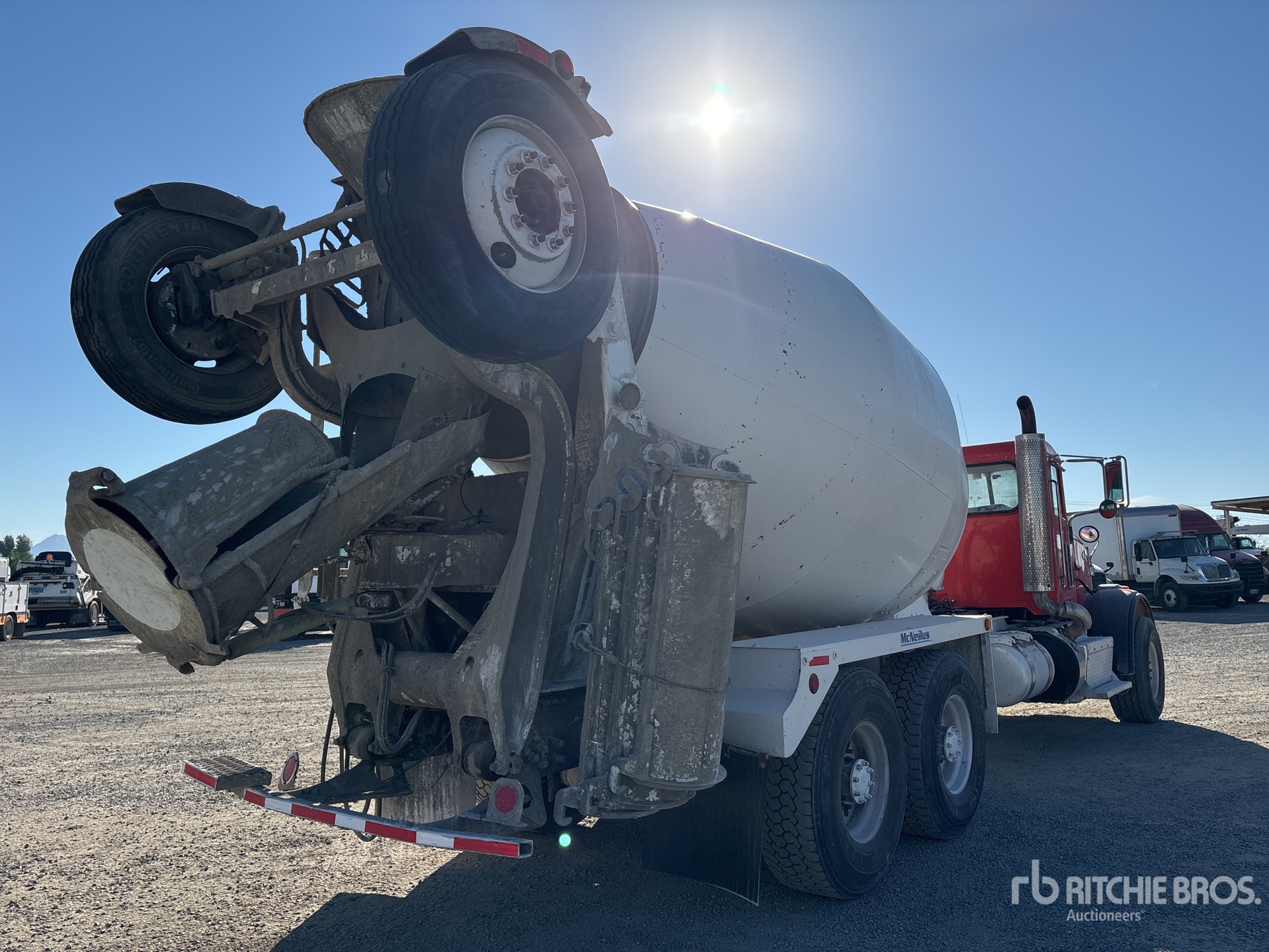 Cummins ISX12 6 Cylinder 11.9 L Diesel 320 hp Engine, 2013 US EPA Label, Requires Diesel Exhaust Fluid, 21397 Engine hrs, Allison Automatic Transmission, 20000 lb Front Axle, 52200 lb Rears, 72200 lb GVWR, 425/65R22.5, Trailing Tag Axle, Dual Steering Boxes, Walking Beam Suspension, 250 in Wheelbase, McNeilus Mixer Unit, 3 Removable Chutes, Remote Control w/Cord