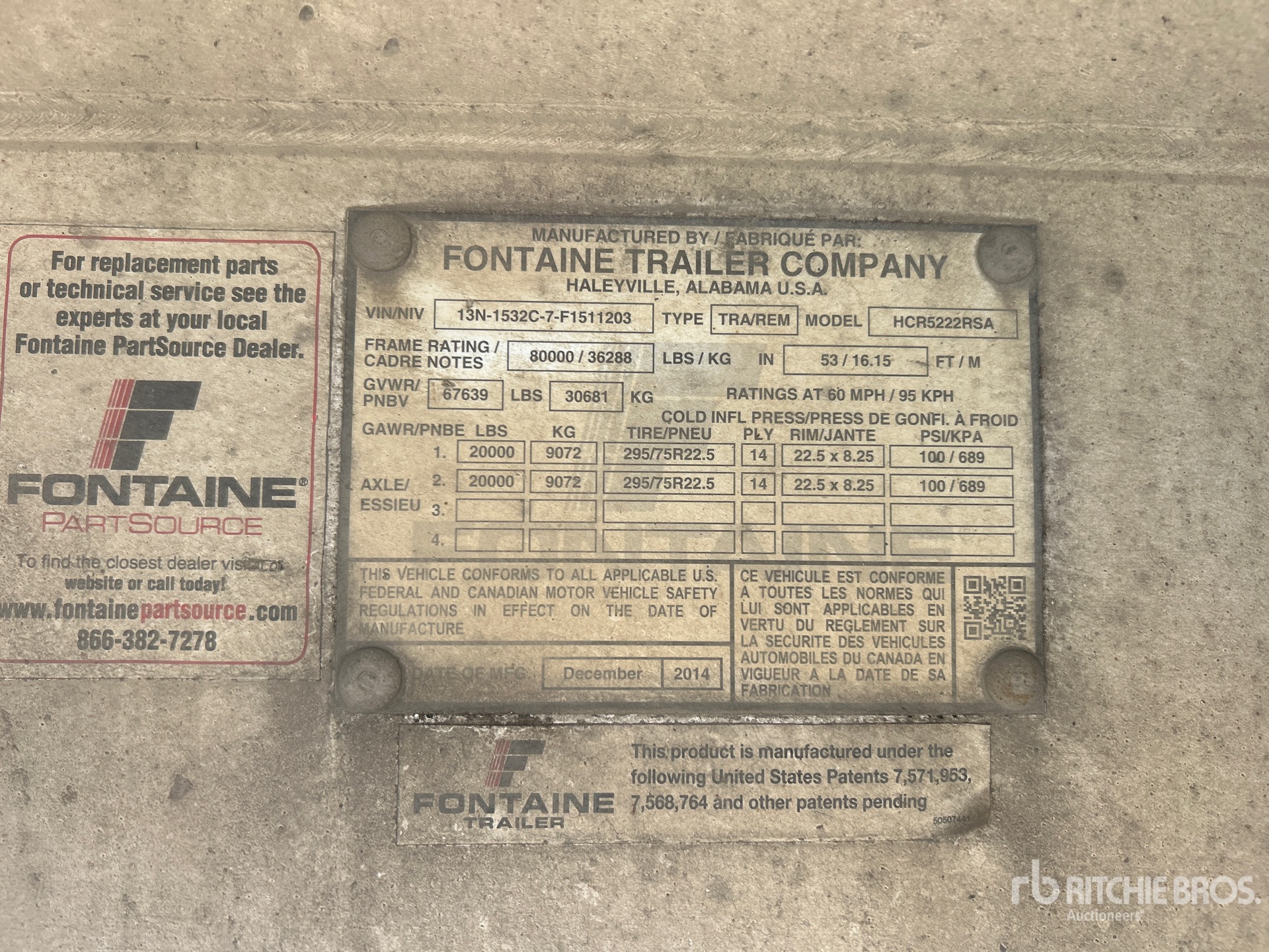 Air Ride Suspension, 96 in Deck Width, 102 in Overall Width, Aluminum Flooring, Aluminum Wheels, 295/75R22.5 Tires, 67639 lb GVWR