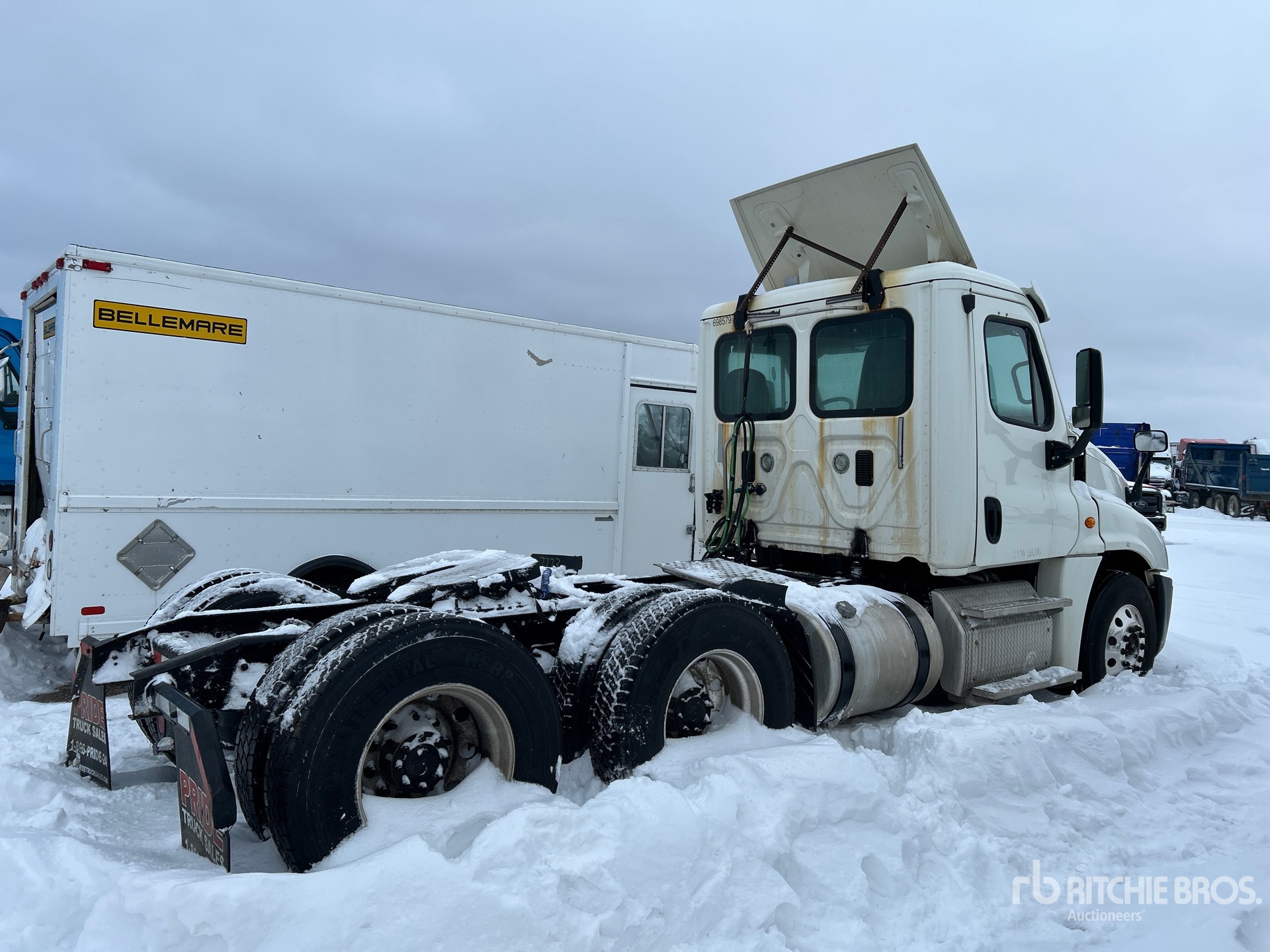 Located in Lane 19, Detroit DD13 500 hp Engine, 2014 US EPA Label, Eaton Fuller FO-16E313A-MHP Ultrashift Automated Transmission, Engine Brake, 178 in Wheelbase, Air Suspension, Aluminum Outer Wheels, 11R22.5, Air Sliding 5th Wheel, Dual Fuel Tanks
