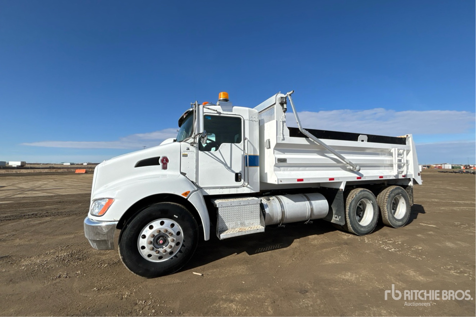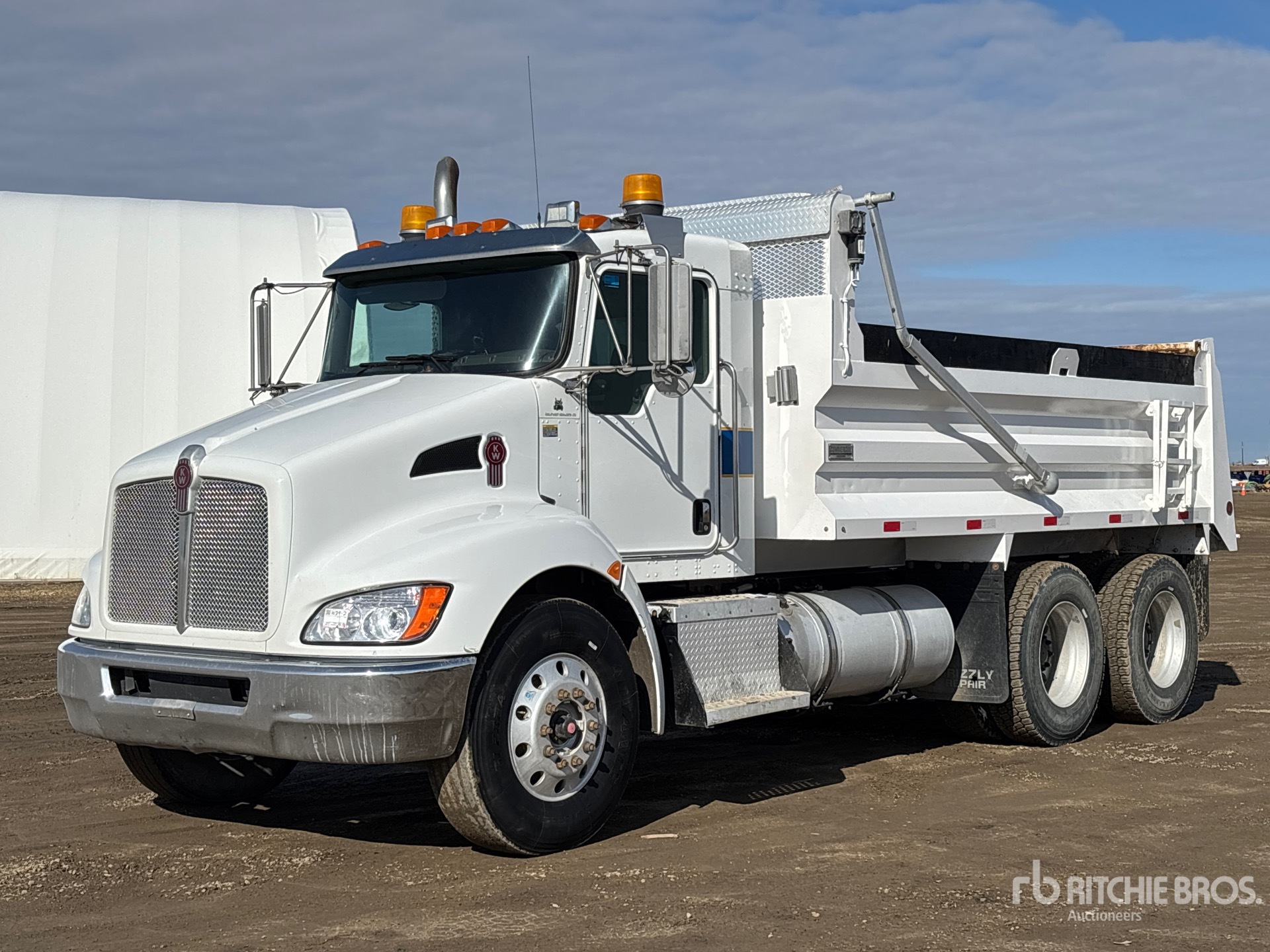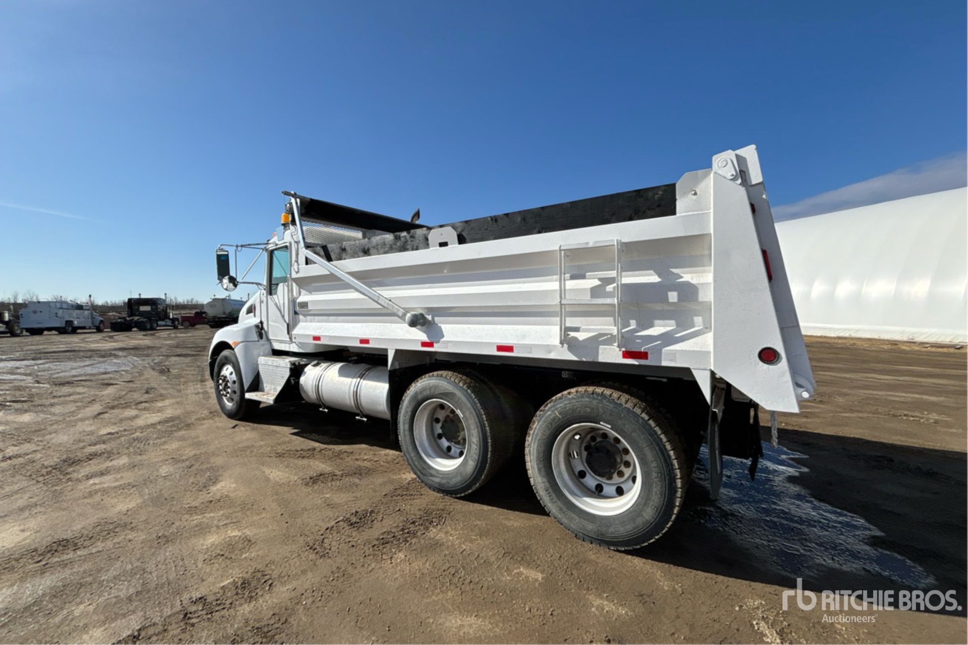 Paccar PX-9 6 Cylinder 8.9 L Diesel 300 hp Engine, 2014 US EPA Label, CARB Compliant, Requires Diesel Exhaust Fluid, 16927 Engine hrs, Engine Brake, Allison 3500 Automatic Transmission, Double Differential Locks, 14600 lb Front Axle, 40000 lb Rears, Spicer DSP41P Drive Axles, 5.57:1 Axle Ratio, 54600 lb GVWR, Aluminum Wheels, 315/80R22.5 Front Tires, 11R22.5 Rear Tires, Hendrickson Air Ride Suspension, 188 in Wheelbase, PTO, 15 ft Long x 3 ft 2 in High Steel Body, Electric Roll Tarp