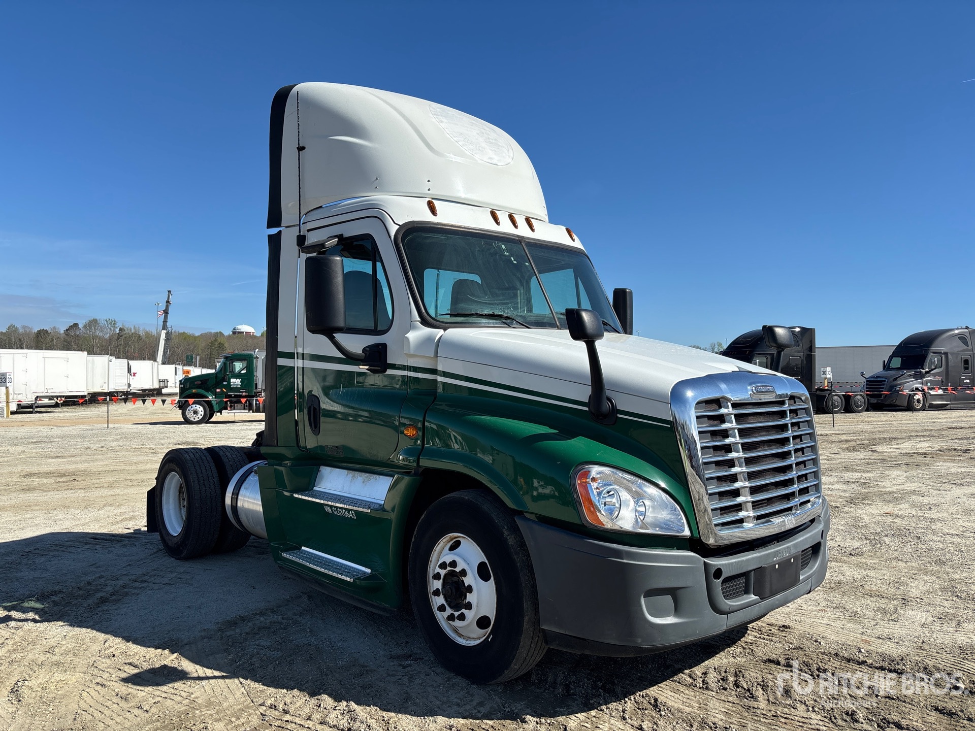 Detroit DD15 455 hp Engine, 2015 US EPA Label, 17644.8 Engine hrs, Eaton Fuller FRO-15210C 10-Speed Manual Transmission, 12000 lb Front Axle, 21000 lb Rears, 33000 lb GVWR, Engine Brake, 158 in Wheelbase, Air Suspension, 11R22.5, Dual Fuel Tanks