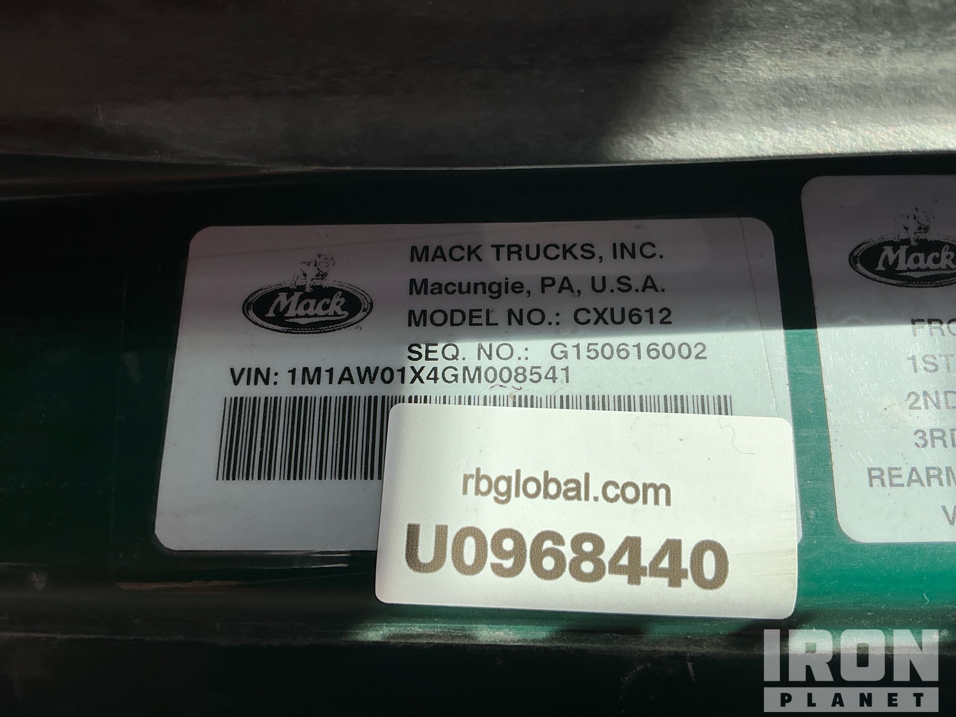 Mack MP7 395 hp Engine, 2015 US EPA Label, 18998 Engine hrs, Mack mDrive 12-Speed Automated Transmission 12000 lb Front Axle, 20000 lb Rears, 32000 lb GVWR, Engine Brake, 154 in Wheelbase, Air Suspension, 275/80R22.5 Front Tires, 295/75R22.5 Rear Tires, Dual Fuel Tanks