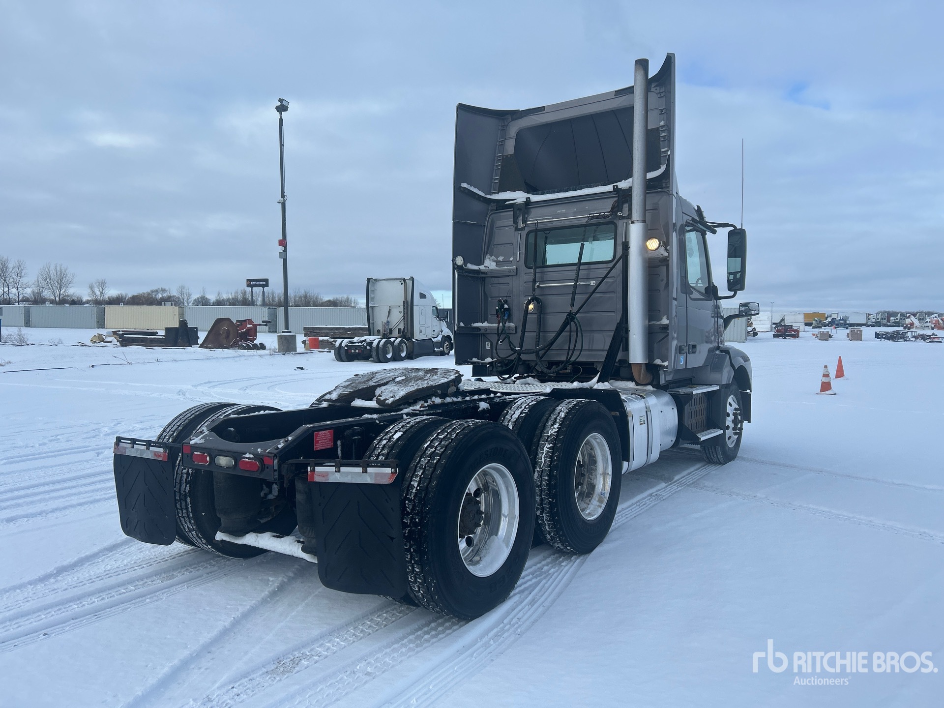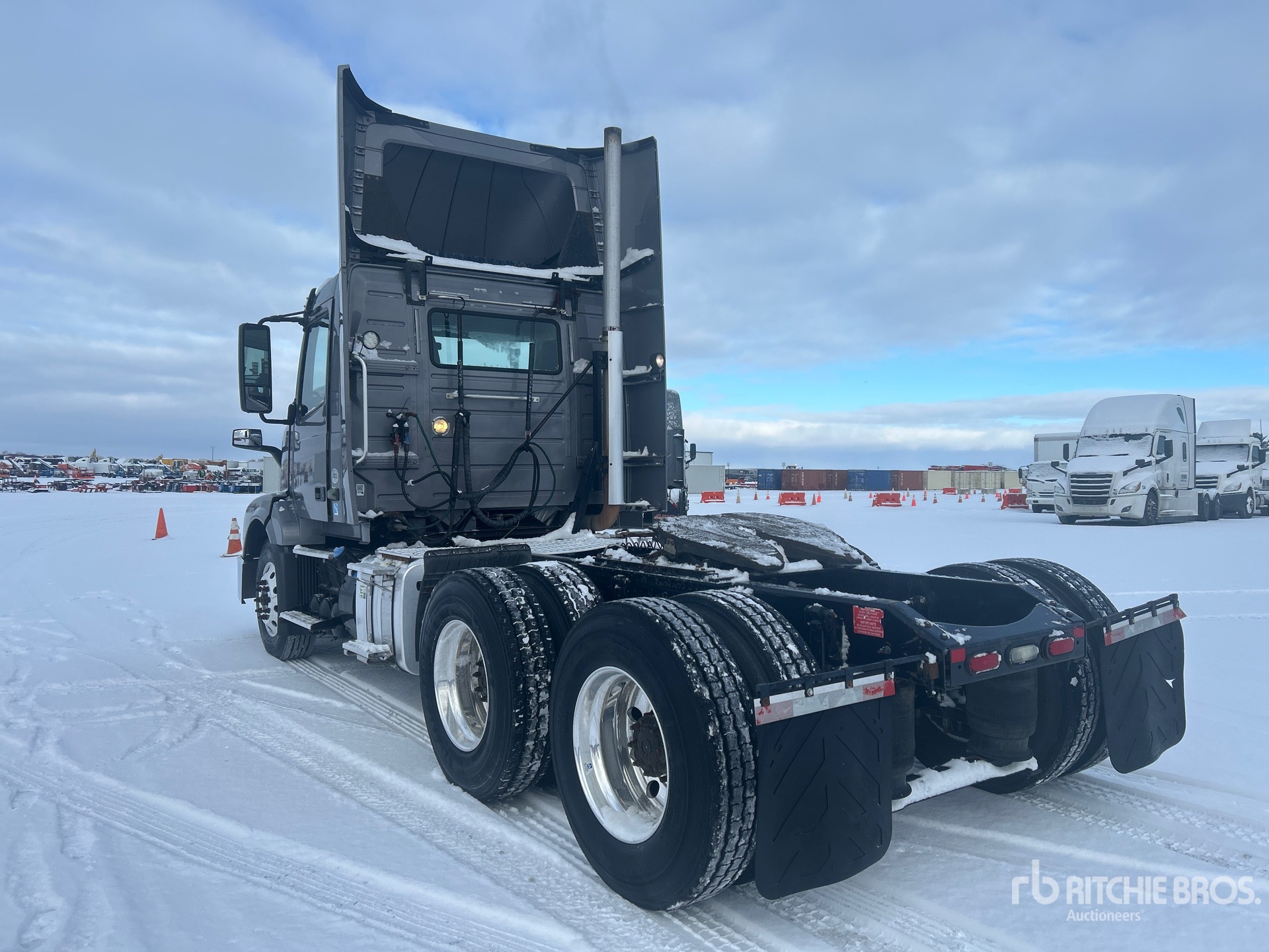 Volvo D11J405 405 hp Engine, 2015 US EPA Label, 1079 Engine hrs, Volvo AT2612D 12-Speed Automated Transmission, 12500 lb Front Axle, 38000 lb Rears, 50500 lb GVWR, Engine Brake, 180 in Wheelbase, Air Suspension, Aluminum Outer Wheels, 295/75R22.5 Front Tires, 11R22.5 Rear Tires, Air Sliding 5th Wheel, Dual Fuel Tanks