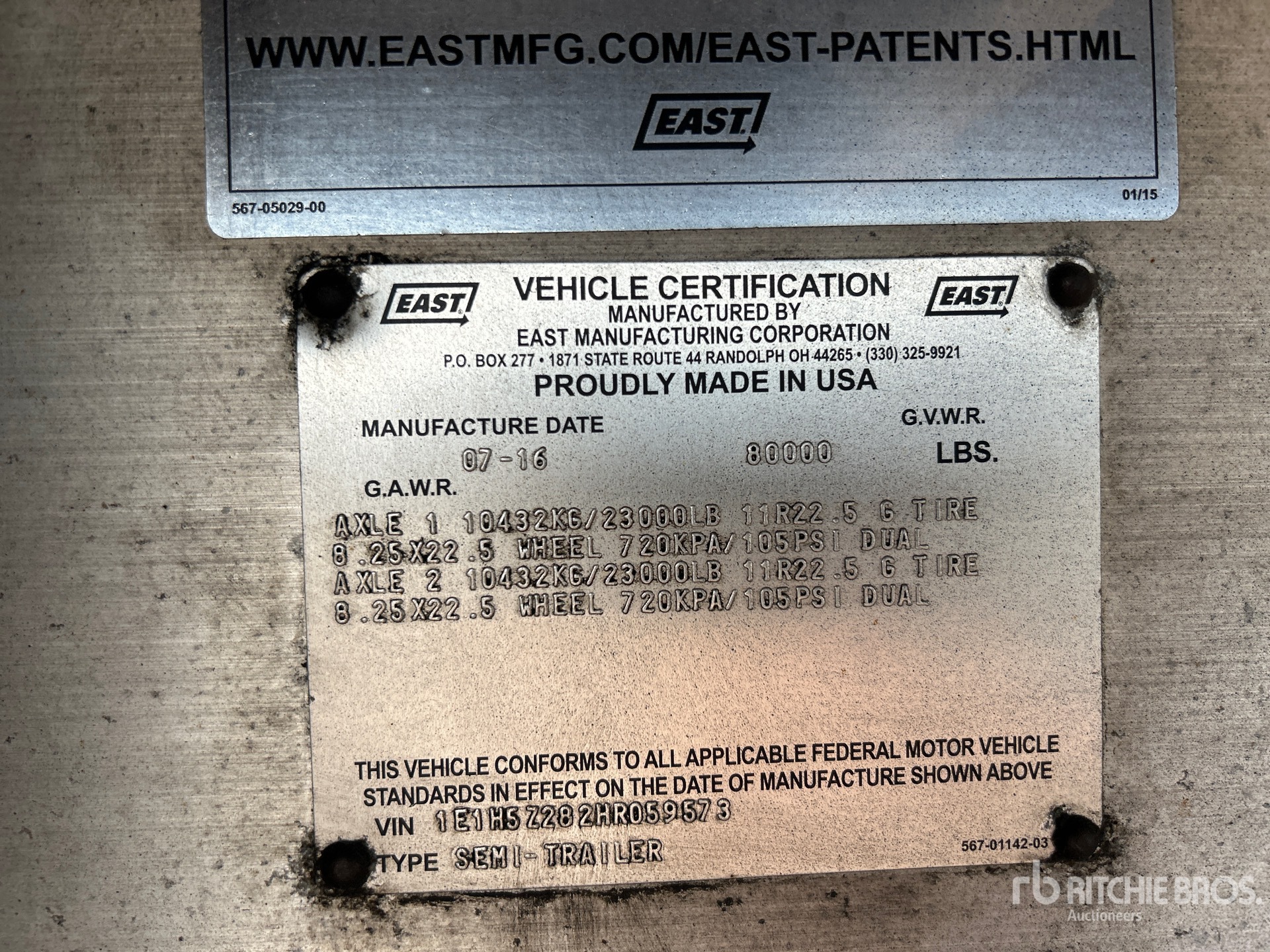 Located in Lane 18 Spot 22, Aluminum Frame, Air Ride Suspension, Air Brakes, Aluminum Wheels, 11R22.5 Tires, 80000 lb GVWR