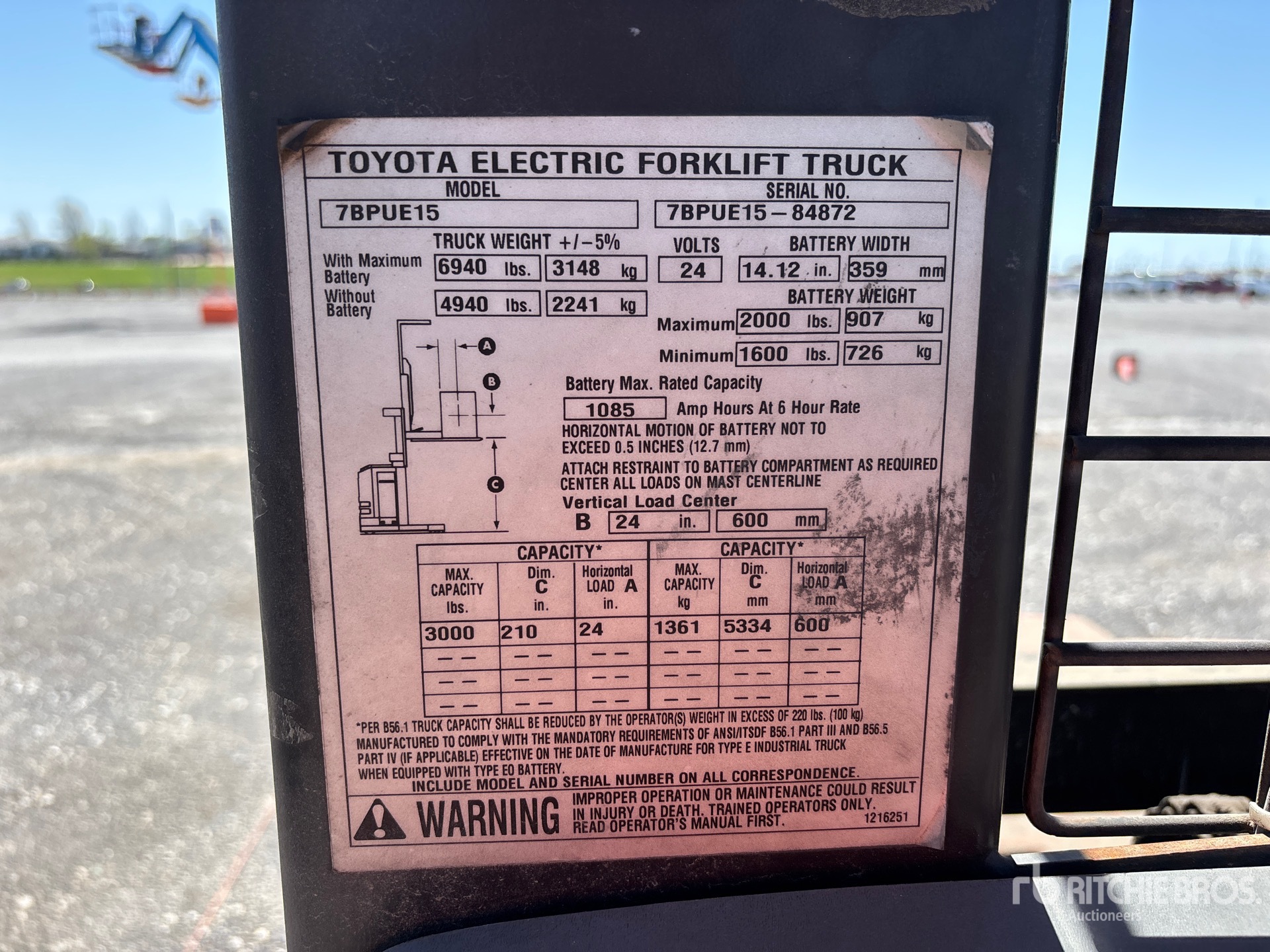 2 Stage Mast, 210 in Max Lift Height, 95 in Lowered Mast Height, 42 in Forks, 24 V