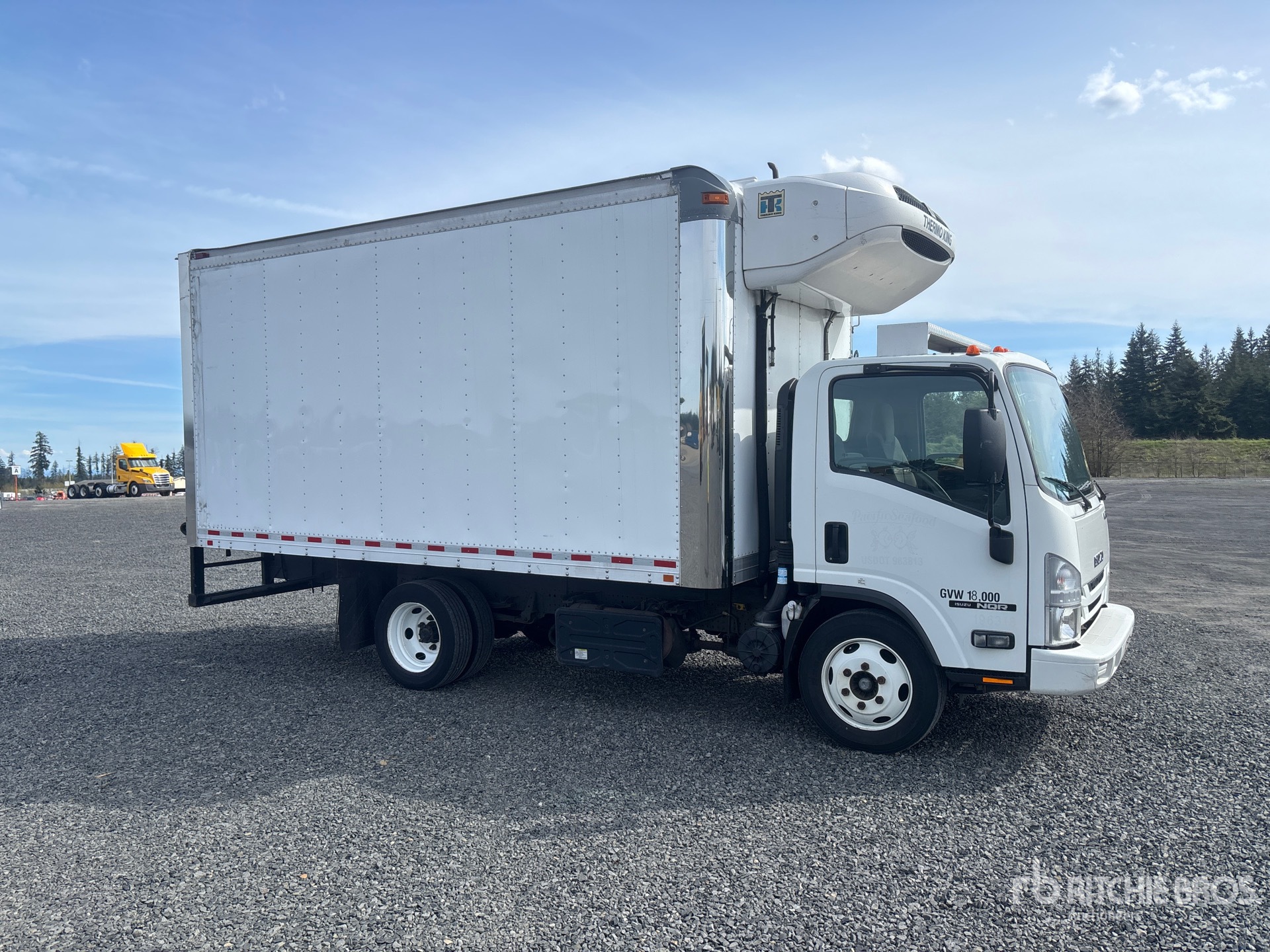 Isuzu 4HK1TC 6 Cylinder 317 cid Diesel 210 hp Engine, 2017 US EPA Label, Automatic Transmission, 6830 lb Front Axle, 12980 lb Rears, 17950 lb GVWR, 225/70R19.5, Spring Suspension, 150 in Wheelbase, Thermo King T-680R Reefer Unit, 6755 Reefer Engine Hours:, Morgan 16 ft x 96 in Wide x 91 in High Body, Walk-Up Ramp