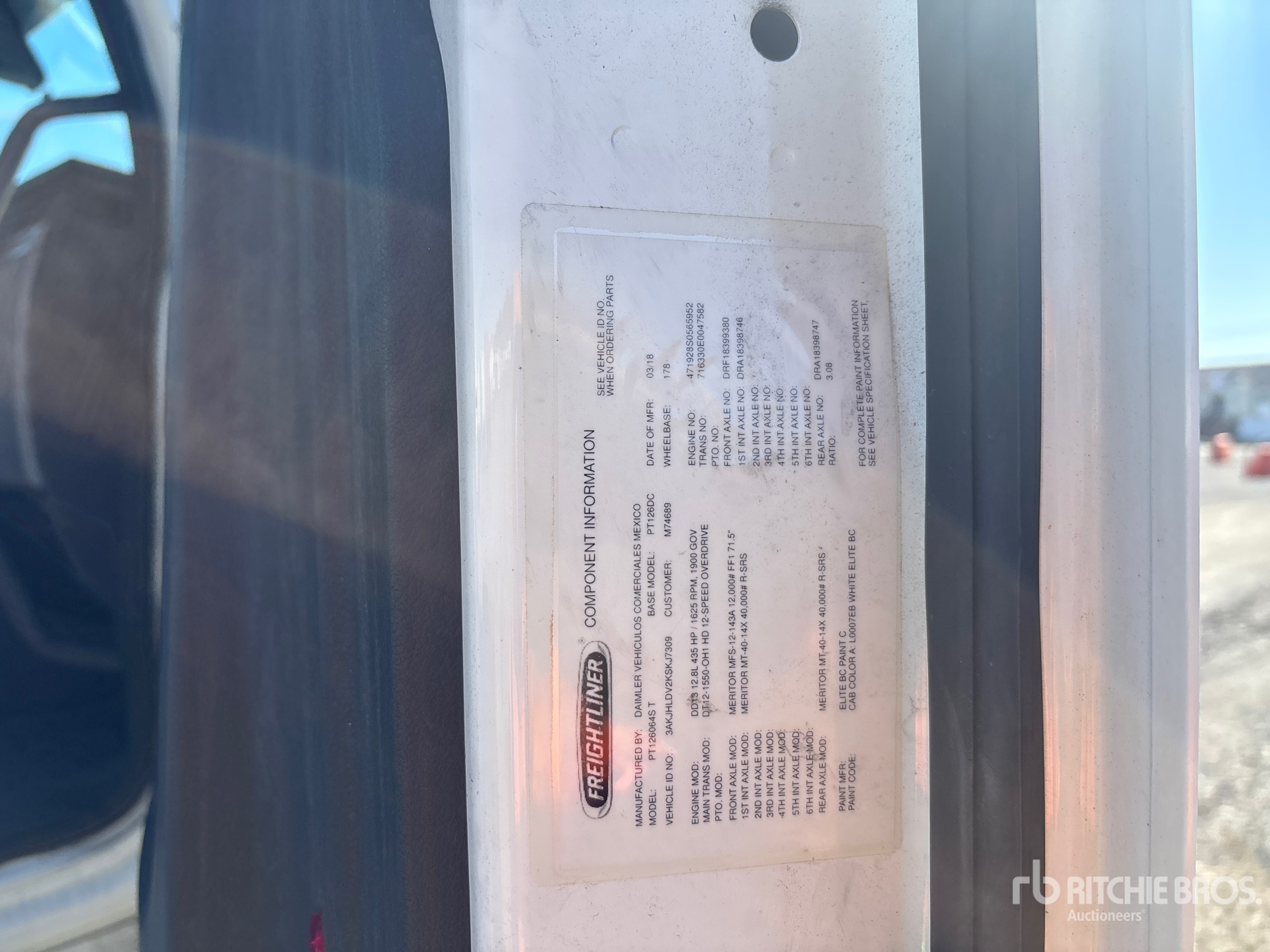 Detroit DD13 435 hp Engine, 2019 US EPA Label, 8563 Engine hrs, Detroit DT12-1550-OH1 12-Speed Automated Transmission, 12000 lb Front Axle, 40000 lb Rears, 52000 lb GVWR, 178 in Wheelbase, Air Suspension, 11R22.5, Air Sliding 5th Wheel, Dual Fuel Tanks
