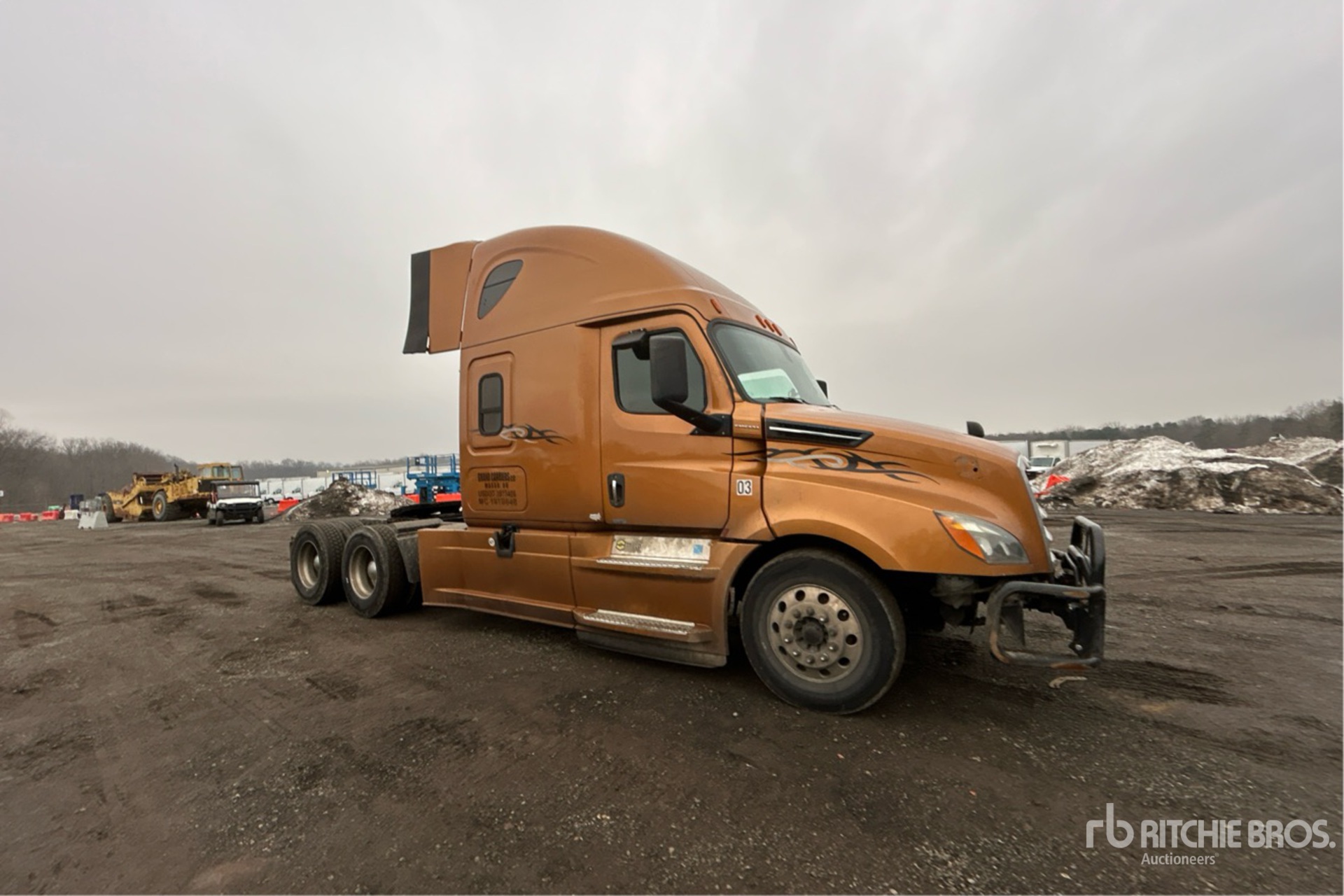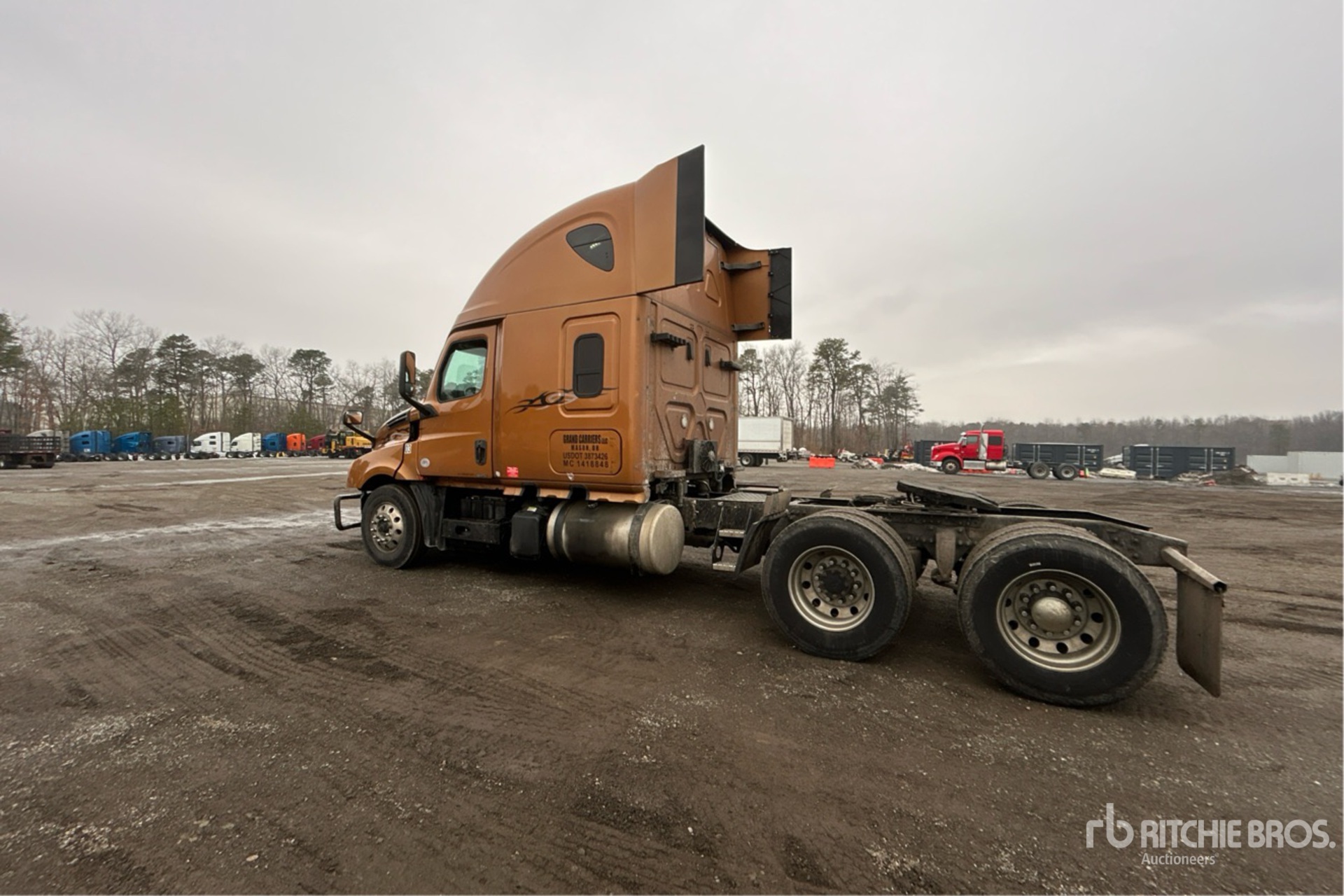 Located in Lane 53 Spot 34, Detroit DD15 Engine, 2018 US EPA Label, 13956 Engine hrs, Detroit DT12-1750-DH1 12-Speed Automated Transmission, 12350 lb Front Axle, 40000 lb Rears, 52350 lb GVWR, 70 in High Rise Sleeper Cab, 227 in Wheelbase, Air Suspension, Aluminum Wheels, 295/75R22.5, Air Sliding 5th Wheel