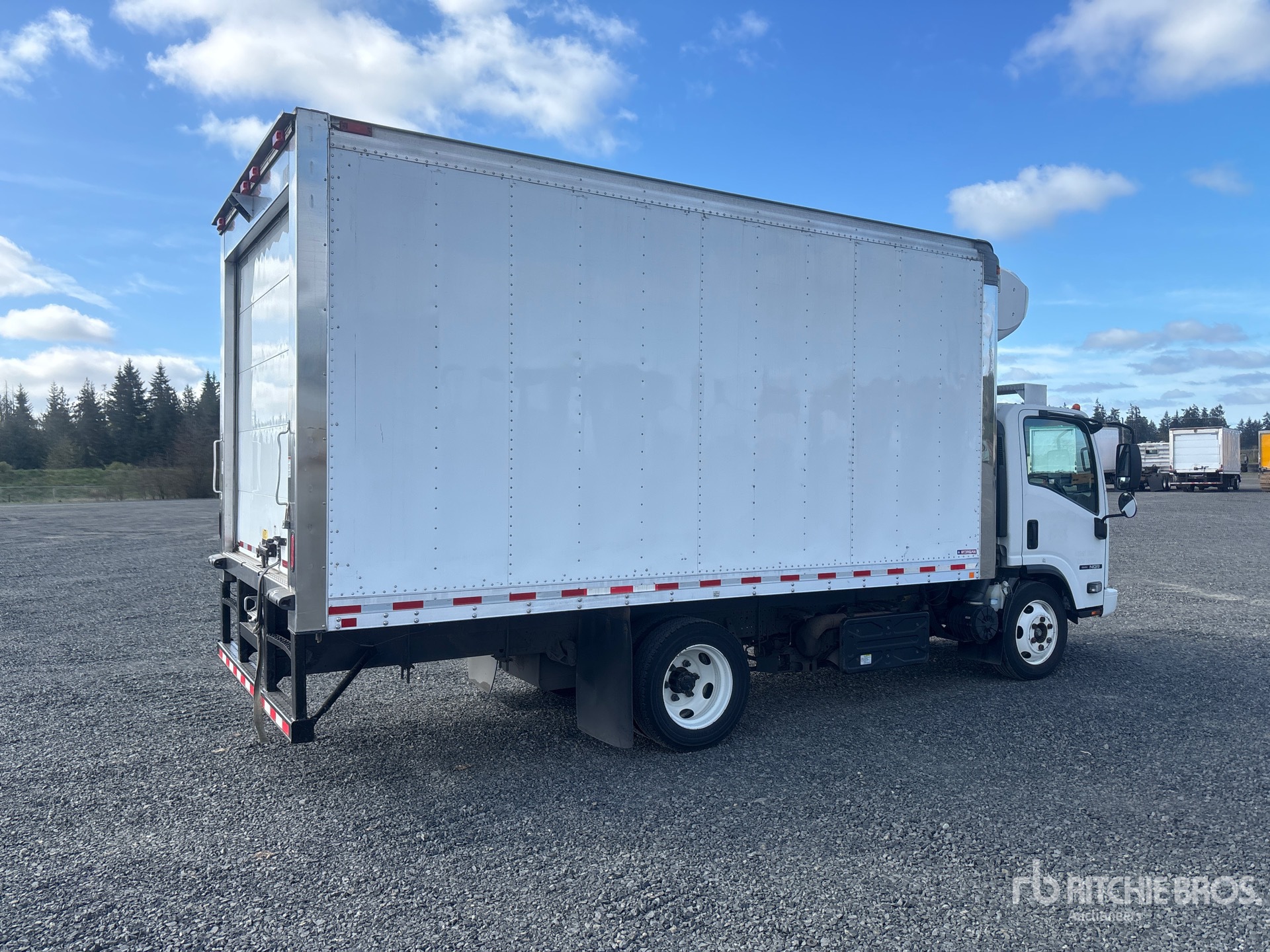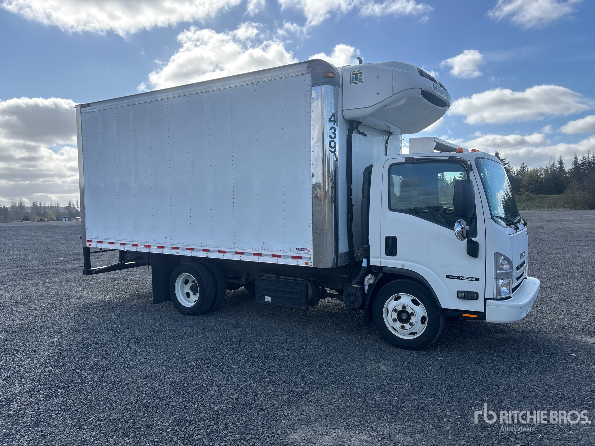 Isuzu 4HK1TC 4 Cylinder 317 cid Diesel 210 hp Engine, 2018 US EPA Label, Requires Diesel Exhaust Fluid, Automatic Transmission, 6830 lb Front Axle, 12980 lb Rears, 17950 lb GVWR, 225/70R19.5, Spring Suspension, 150 in Wheelbase, Thermo King T-680R Reefer Unit, 8887 Reefer Engine Hours:, Morgan 16 ft x 96 in Wide x 91 in High Body, Walk-Up Ramp
