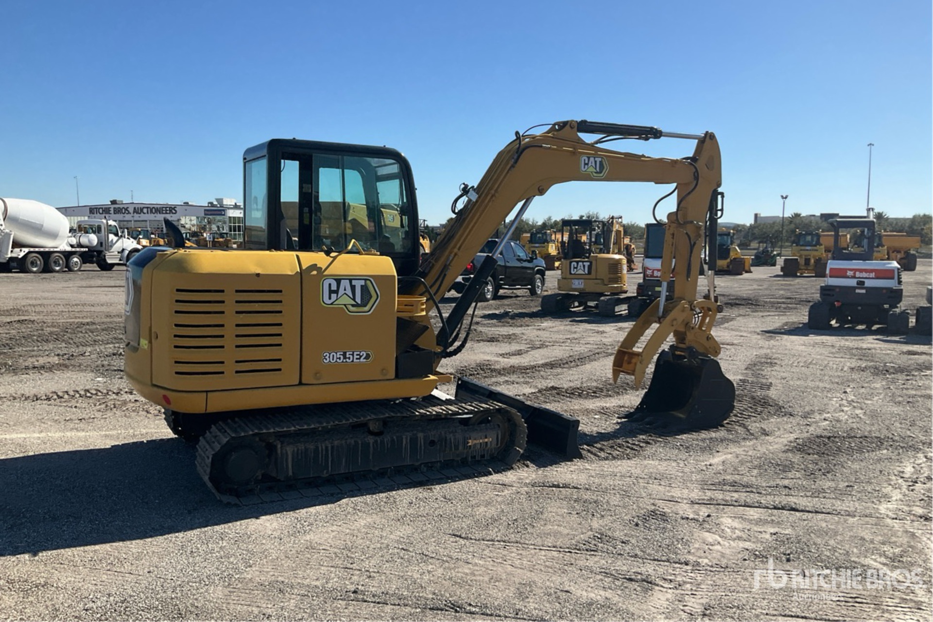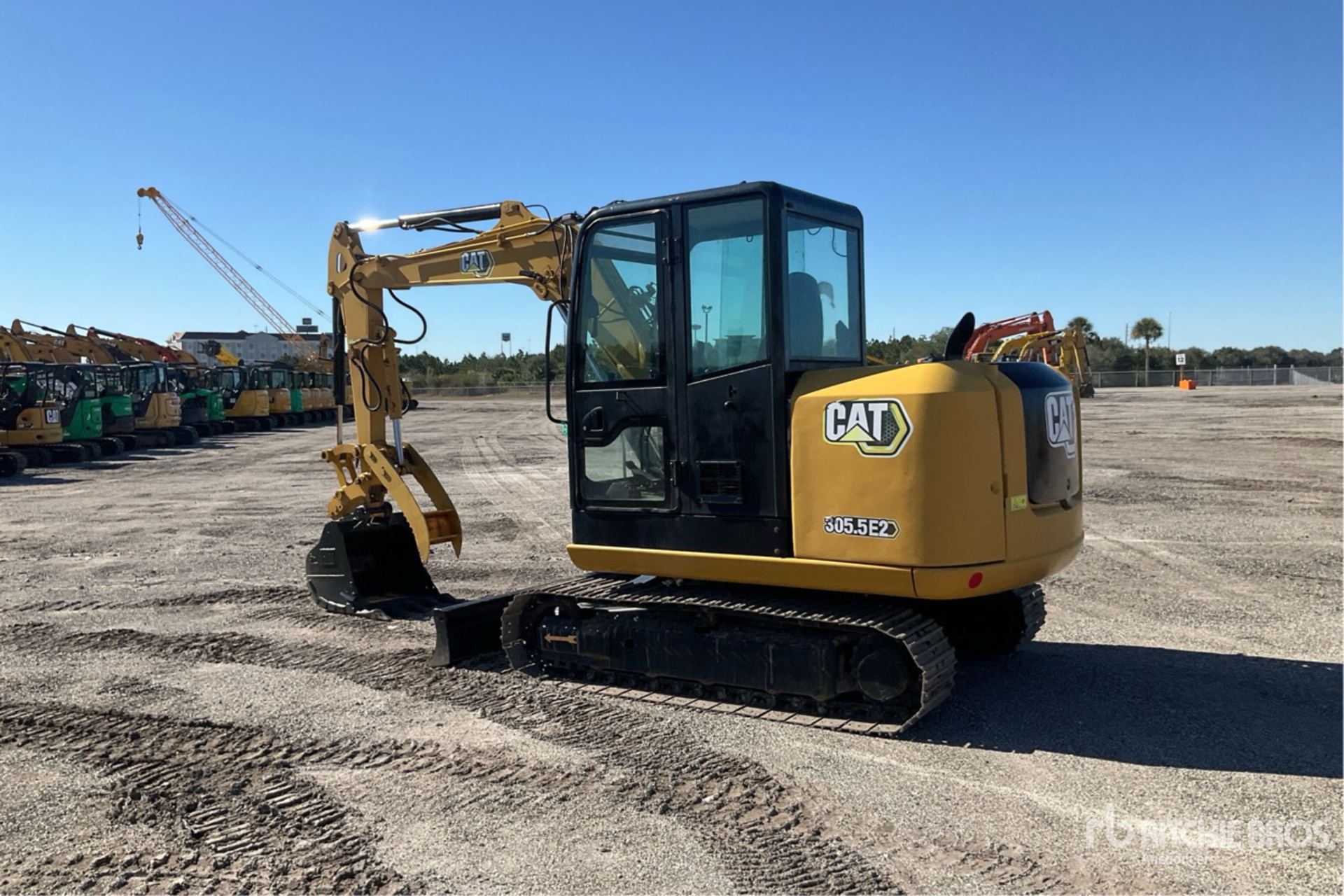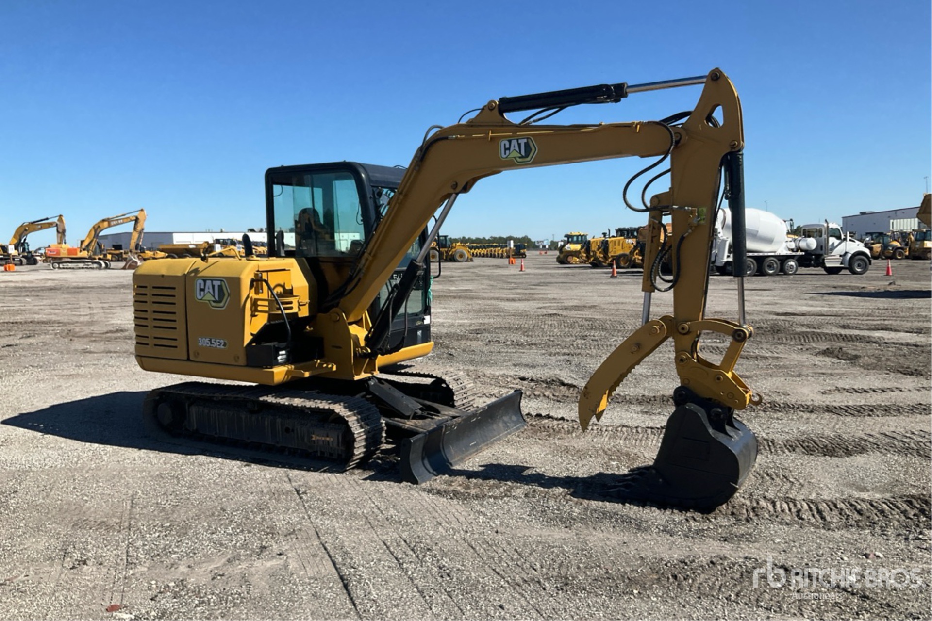 Enclosed Cab, Air Conditioner, 5 ft 7 in Stick, Auxiliary Hydraulic Plumbing, Backfill Blade, 16 in Triple Grouser Track Shoes, Hydraulic Quick Coupler, 26 in Digging Bucket, Hydraulic Thumb