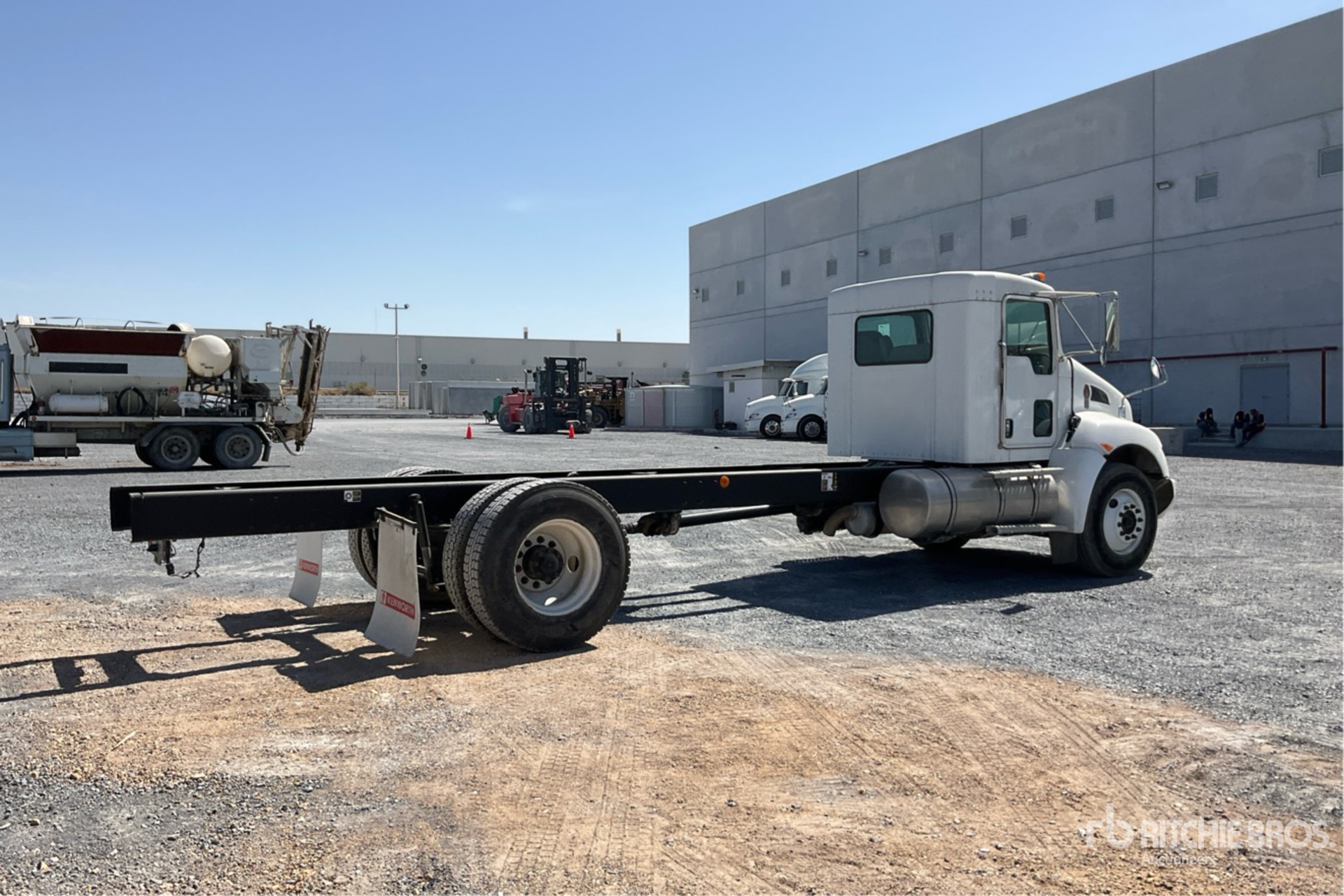 Paccar PX-6 Diesel 200 hp Engine, 7160 Engine hrs, Exhaust Brake, Eaton Fuller 6-Speed Manual Transmission, 12000 lb Front Axle, 23000 lb Rears, 4.30:1 Axle Ratio, 11R22.5, Air Ride Suspension, 226 in Wheelbase, 156 in Cab to Axle, 244 in Cab to End of Frame