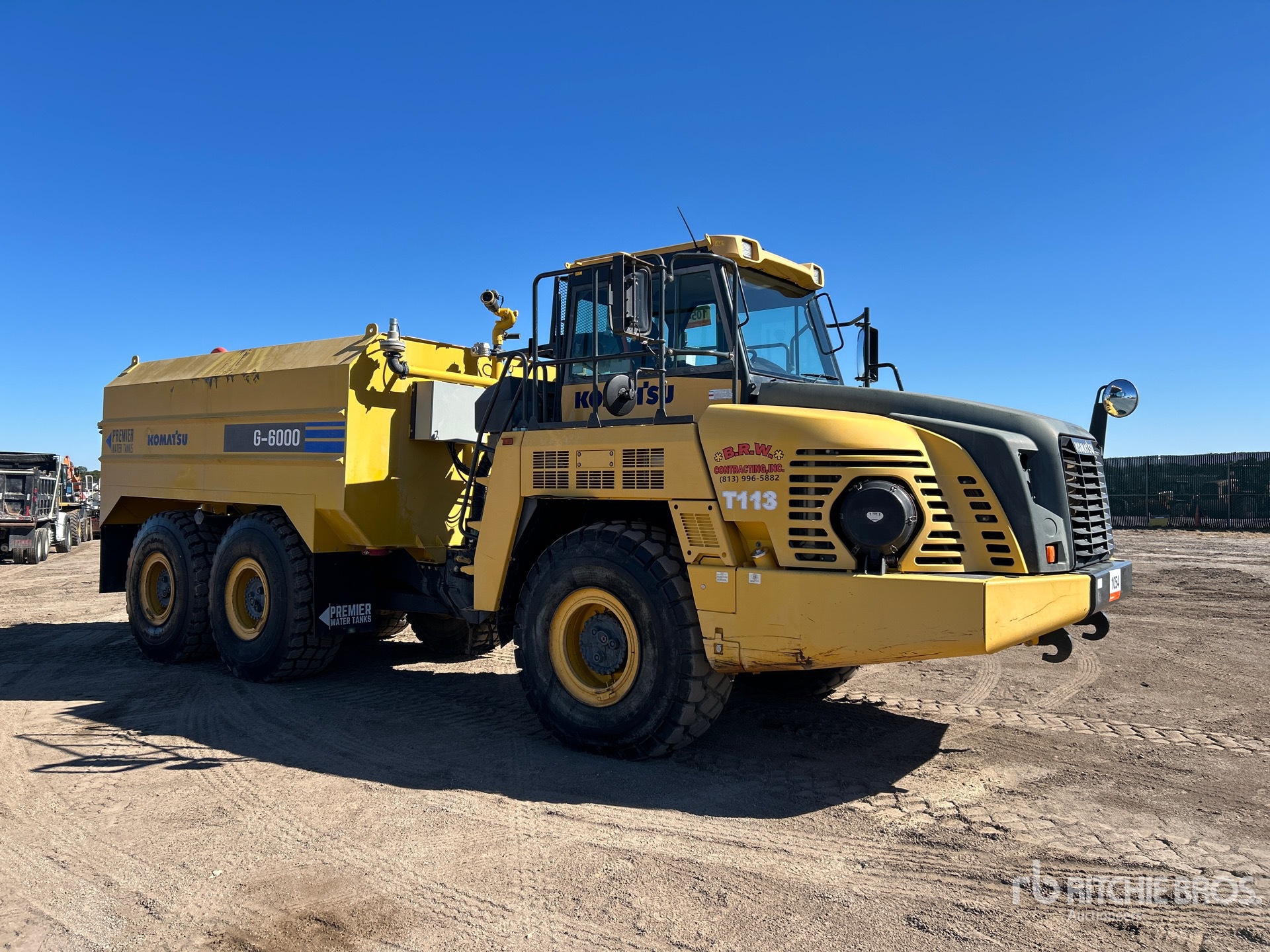 Enclosed Cab, Air Conditioner, Retarder, Rear View Camera, Emergency Steering, Air Ride Seat, 2019 US EPA Label, Requires Diesel Exhaust Fluid, Premier Tank, In-Cab Remote Controlled Water Cannon, Rear Spray, Side Spray, Hose Reel w/ Nozzle, Hydraulic Driven Water Pump, Ground Fill Stand Pipe, 23.5R25 Tires, Equipment-from-B-R-W-Contracting