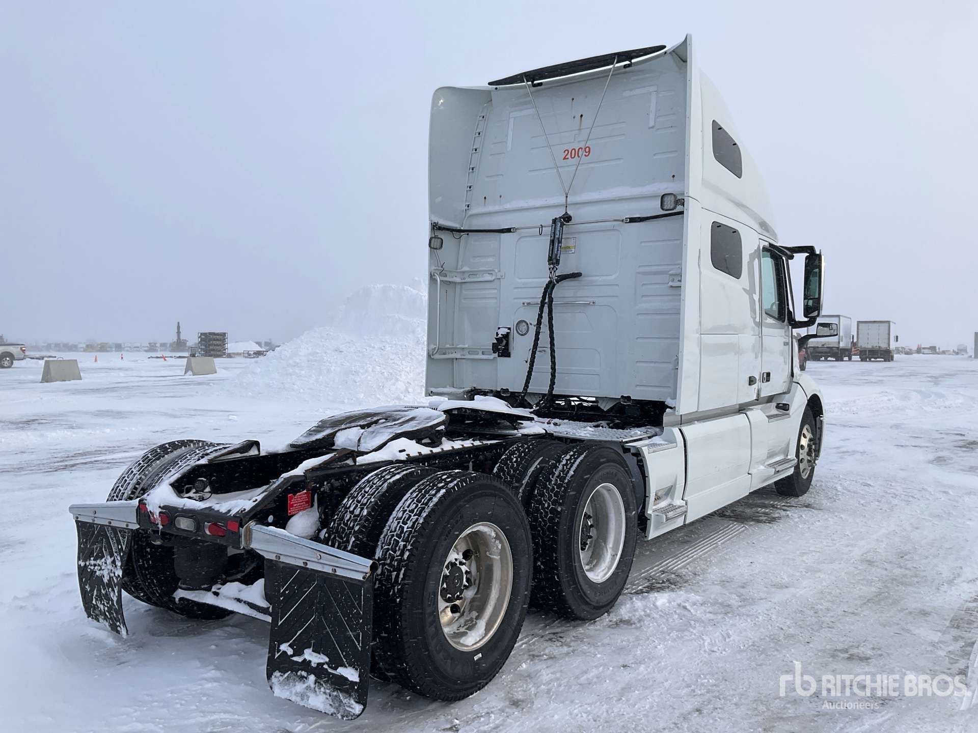 Located in Lane 8 Spot 3, Volvo D13 455 hp Engine, 13985 Engine hrs, Volvo ATO2612F 12-Speed Automated Transmission, 12500 lb Front Axle, 40000 lb Rears, 52500 lb GVWR, Engine Brake, Differential Lock, 70 in High Rise Sleeper Cab, Bunk Beds, 216 in Wheelbase, Air Suspension, Aluminum Wheels, 11R22.5, Air Sliding 5th Wheel, Dual Fuel Tanks