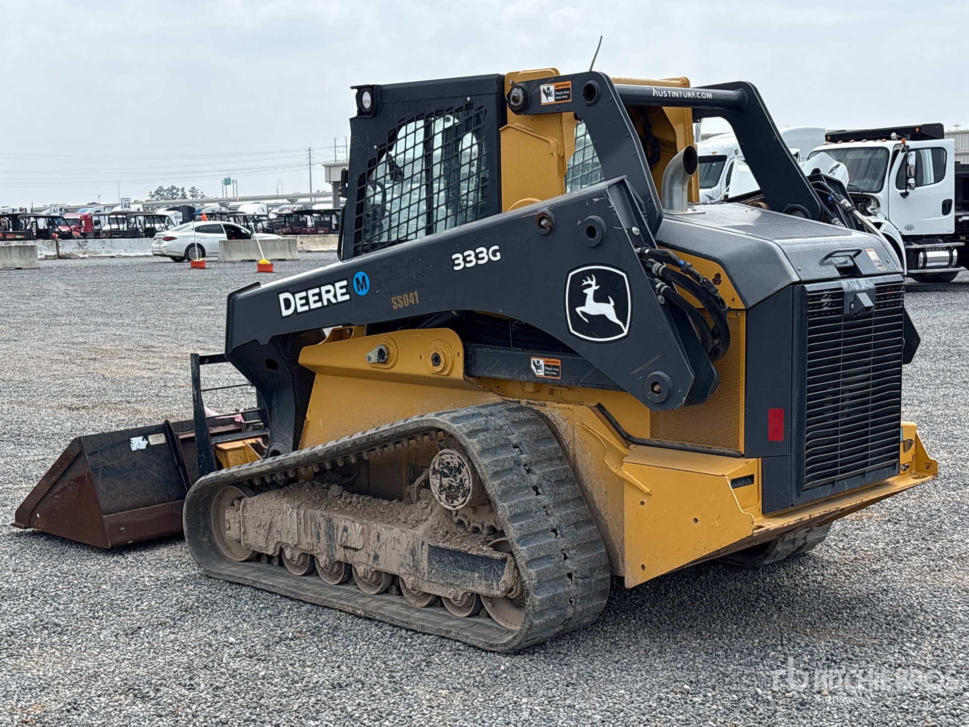 Enclosed Cab, Air Conditioner, Joystick Steering, Rear View Camera, Requires Diesel Exhaust Fluid, 17.5 in Track Belts, 8 Pin Electric Kit, Hydraulic Coupler, 86 in Bucket, Forks