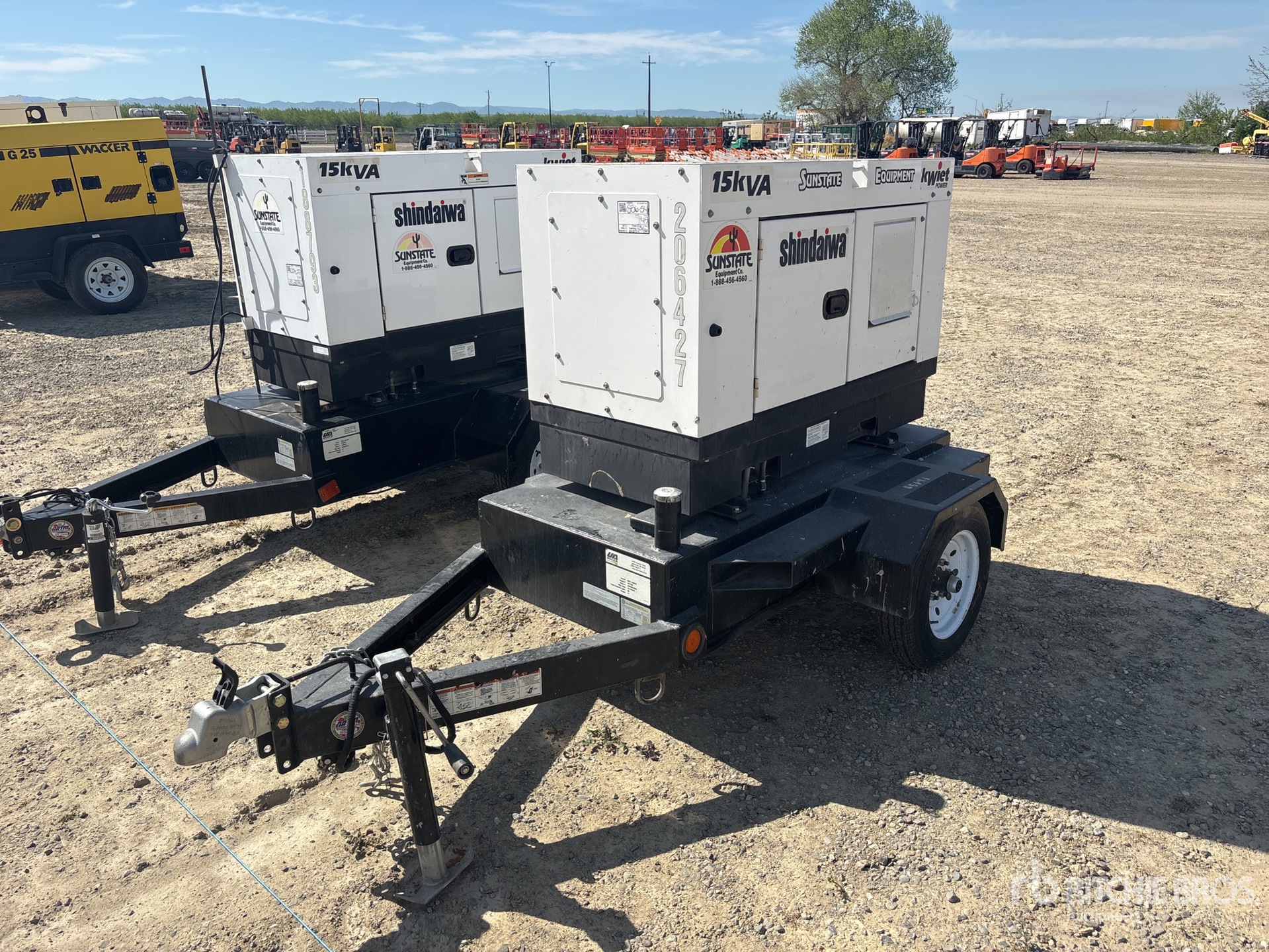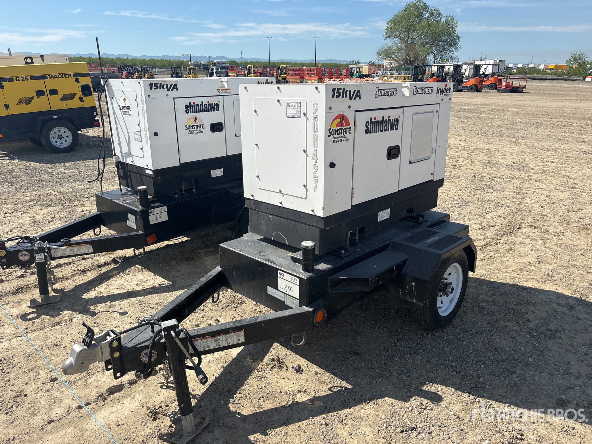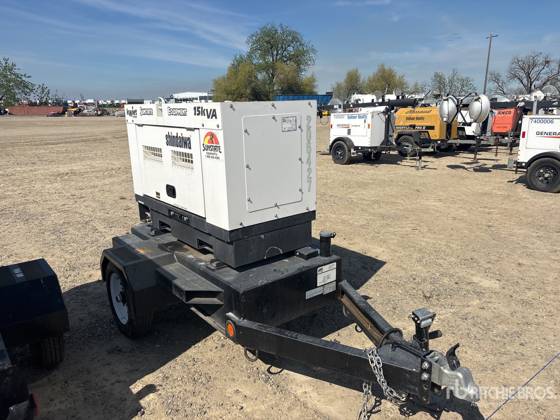 Tier 4, 2019 US EPA Label, Kubota 3 Cylinder 0.8 L Diesel Engine, 15 kVA/ Rated 3 Phase Output, 240 V Rated Voltage, 9 kVA,/ Rated Single Phase Output, 240 V / 120 V Rated Voltage, 240 V & 120 V Receptacles, Bottom Mounted Fuel Tank, Ball Hitch Carrier Trailer