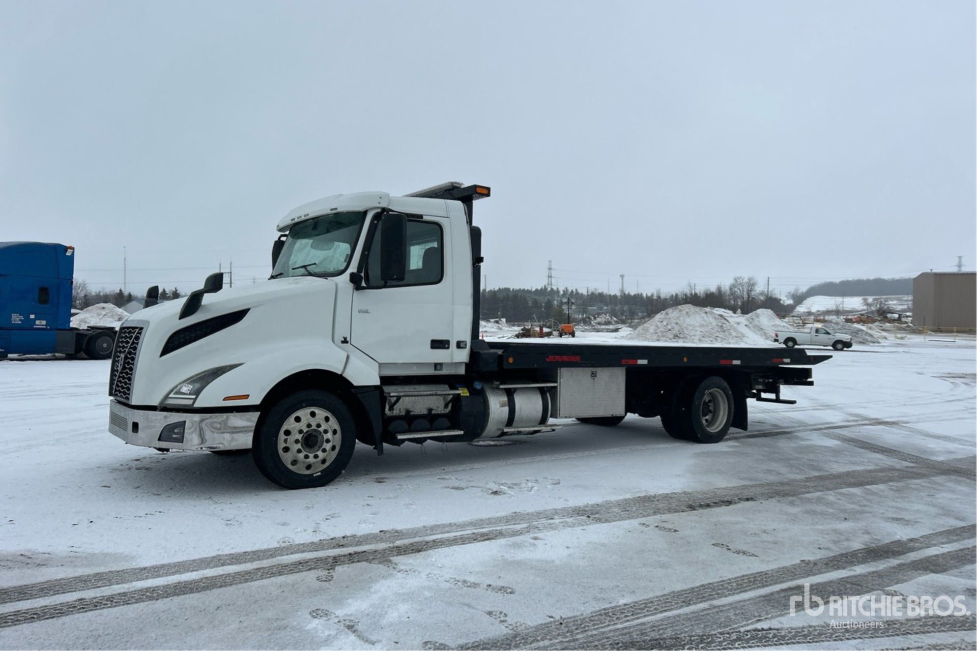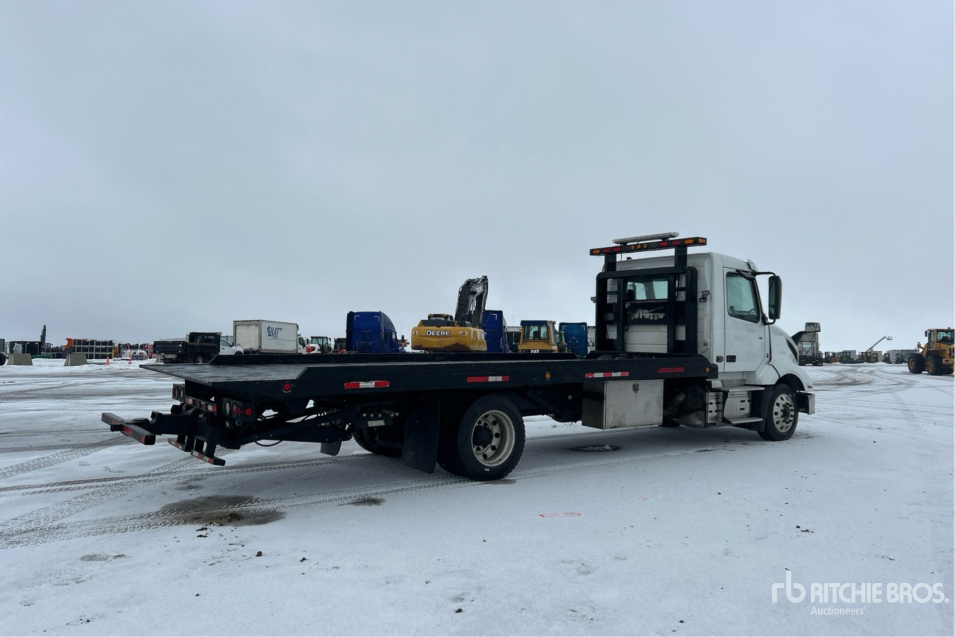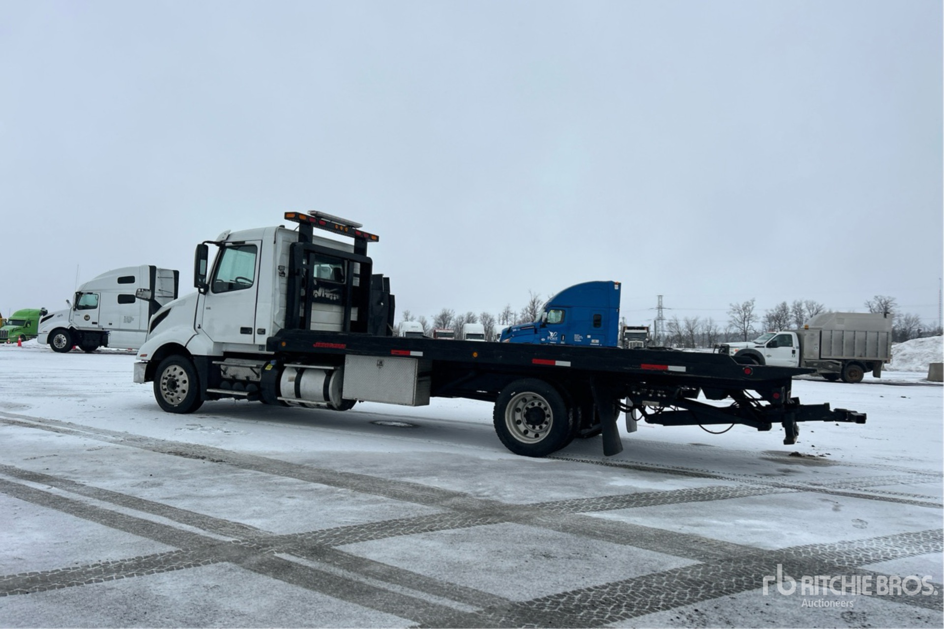Volvo D13N 6 Cylinder 12.8 L Diesel 405 hp Engine, 20741 Engine hrs, Engine Brake, Volvo AT2612F 12-Speed Automatic Transmission, 12350 lb Front Axle, 20000 lb Rears, Meritor MT-40-14X Drive Axles, 52350 lb GVWR, Aluminum Wheels, 255/70R22.5, Air Ride Suspension, 229 in Wheelbase, PTO, 22 ft x 102 in Bed, Winch, Hydraulic Wheel Lift