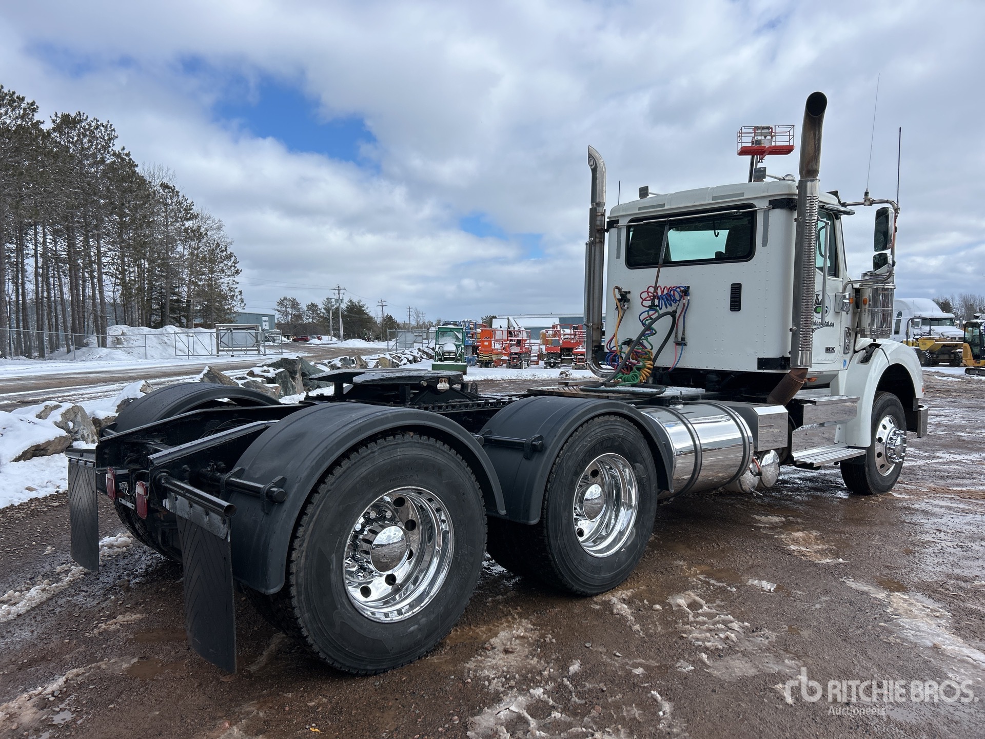 Cummins X15 500V 500 hp Engine, 2020 US EPA Label, 8775 Engine hrs, Eaton Fuller 18-Speed Manual Transmission, 13220 lb Front Axle, 46000 lb Rears, 59220 lb GVWR, Engine Brake, Double Differential Locks, 198 in Wheelbase, Air Suspension, Aluminum Wheels, 11R22.5, Dual Steering Boxes, Air Sliding 5th Wheel