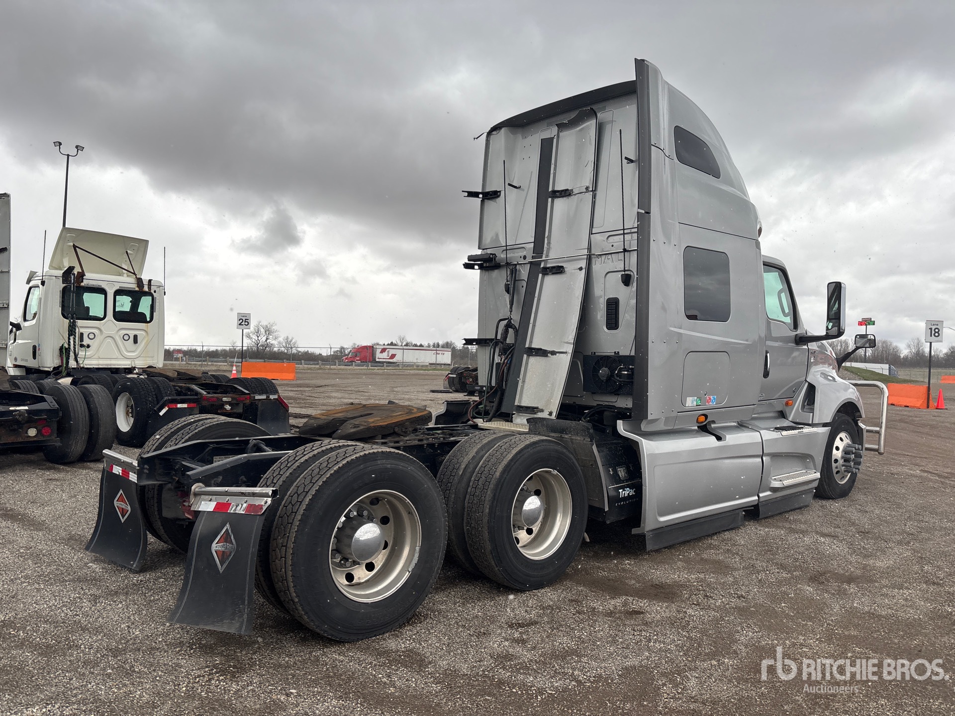 Located in Lane 31 Spot 10, Cummins X15 450 hp Engine, 2021 US EPA Label, 16374 Engine hrs, Eaton Fuller 12-Speed Automated Transmission, 13200 lb Front Axle, 40000 lb Rears, 53200 lb GVWR, Engine Brake, 73 in High Rise Sleeper Cab, Bunk Beds, Auxiliary Power Unit, Thermo King Sleeper Air Conditioner, 228 in Wheelbase, Air Suspension, Aluminum Wheels, 295/75R22.5, Air Sliding 5th Wheel, Dual Fuel Tanks