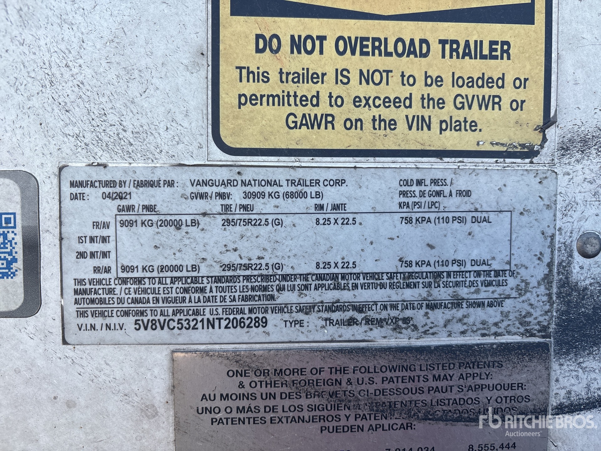 Located in Lane 41 Spot 91, Air Ride Sliding Suspension, Side Skirts, Hardwood Floor, Swing Door, 295/75R22.5 Tires 68000 lb GVWR