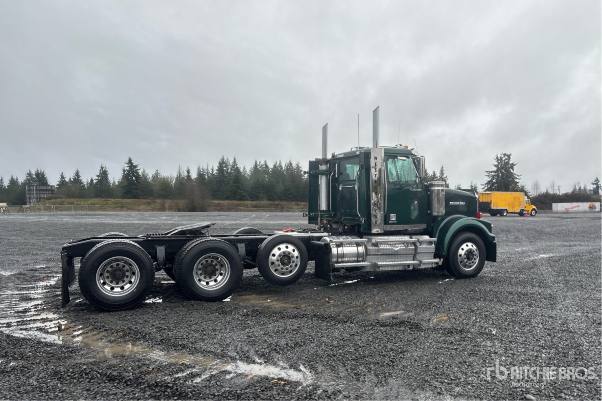 Located in Lane 12 Spot 4, Cummins X15 525 hp Engine, 2021 US EPA Label, 12958 Engine hrs, Eaton Fuller FO-18E318B-MXP Ultra Shift 18-Speed Automated Transmission, 13300 lb Front Axle, 46000 lb Rears, 64240 lb GVWR, Engine Brake, 244 in Wheelbase, Air Suspension, Air Lift Pusher Axle, Aluminum Wheels, 11R22.5, Air Sliding 5th Wheel, Dual Fuel Tanks