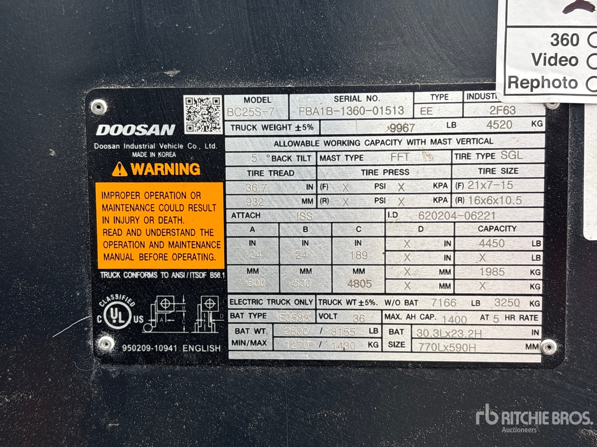 Karyawan Ritchie Bros. yang berkualifikasi mengumpulkan detail informasi peralatan dan melakukan uji fungsional pada komponen utama pada aset ini. Anda, atau perwakilan Anda, juga dapat memeriksa item apa pun pada situs sebelum melakukan penawaran pada hari pelelangan.