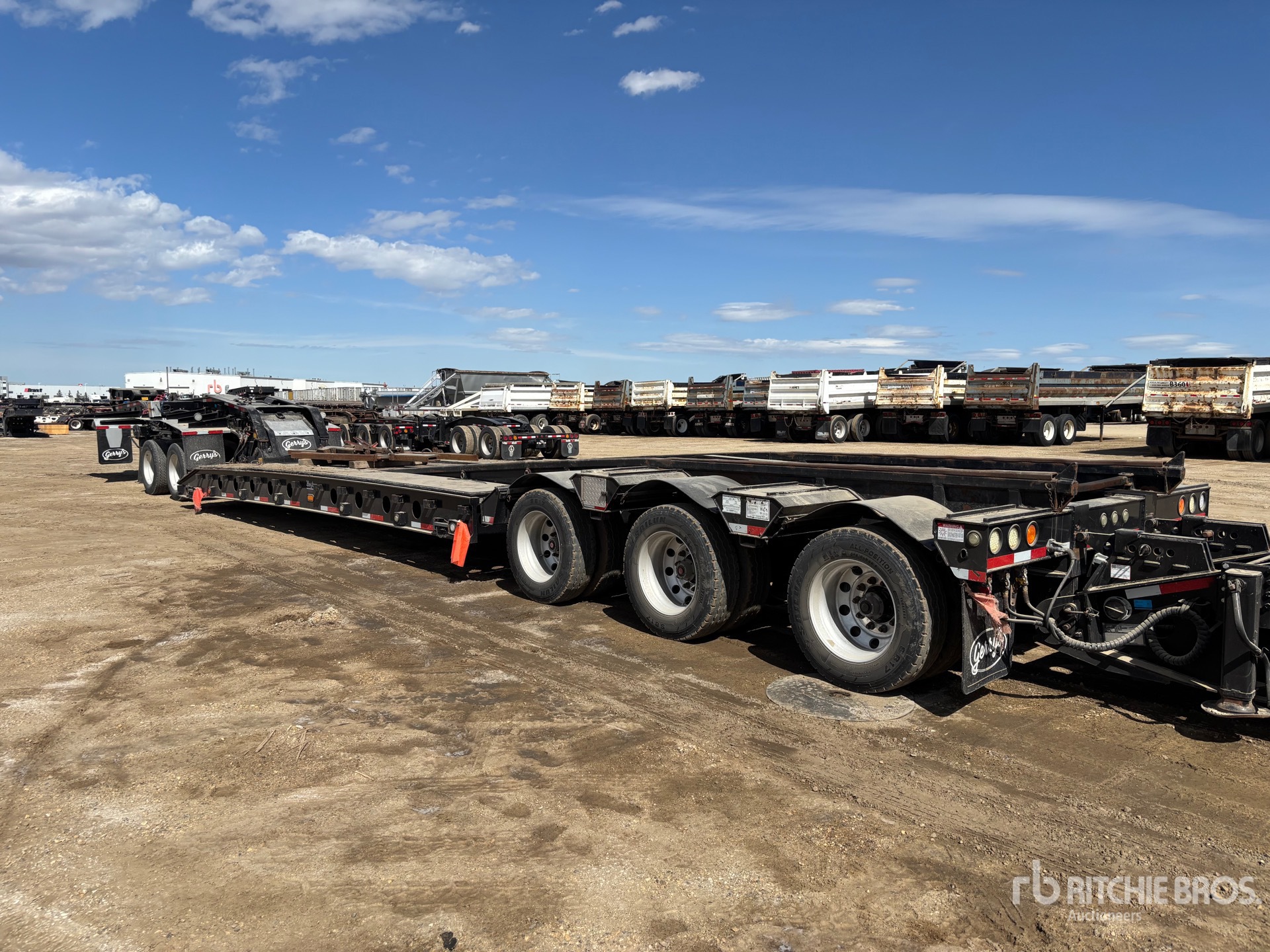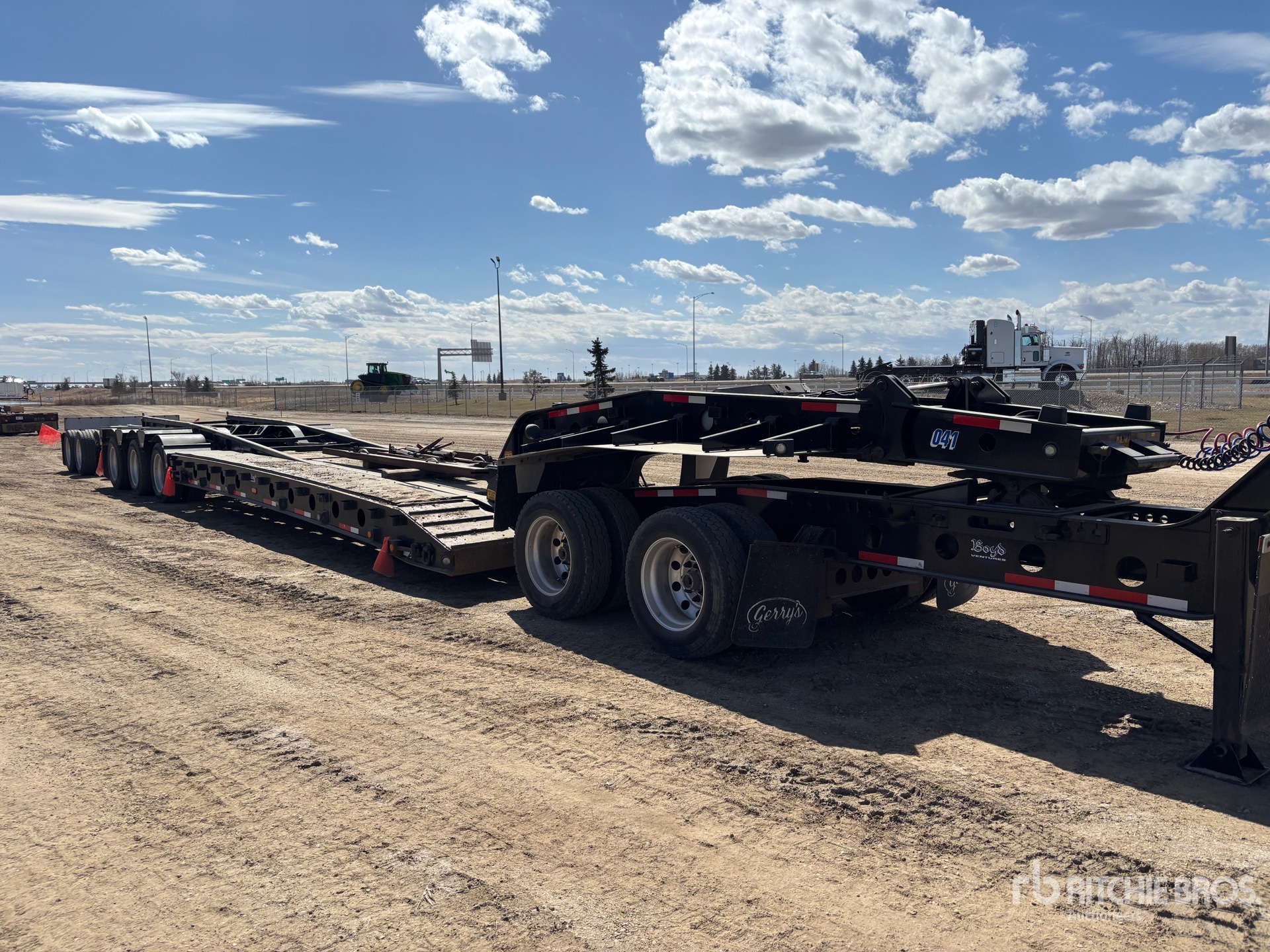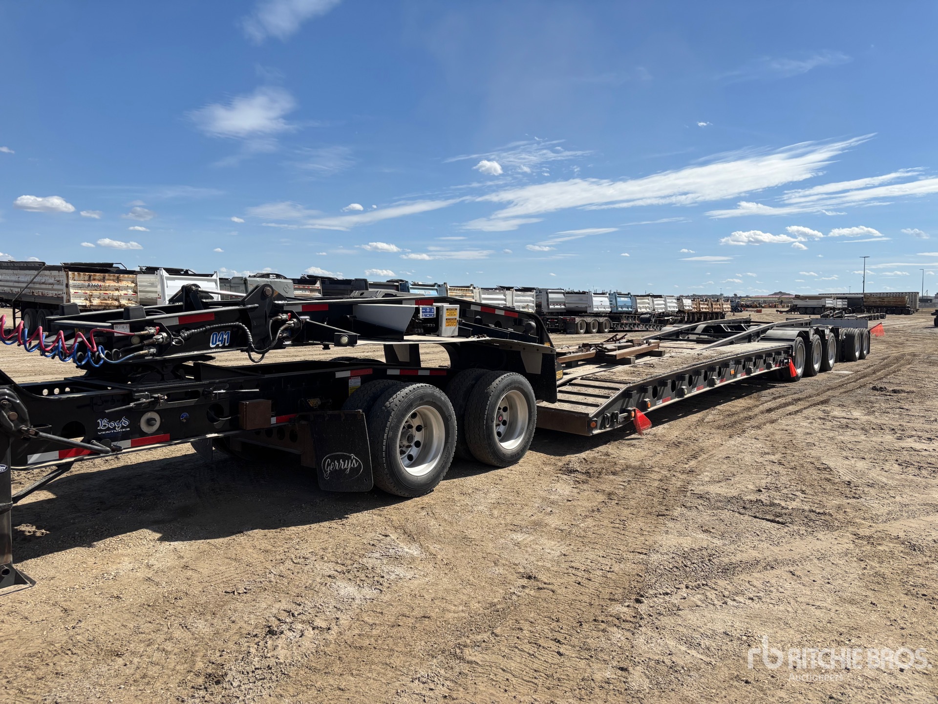 148500 lb GVWR, Hydraulic Removable Gooseneck, Neck Extension, 27 ft x 120 in Main Deck, Air Ride Suspension, T/A Jeep, T/A Pin-On Booster Axle, Plumbed for Booster Axle, Gasoline Driven Self Contained Hydraulic System, Aluminum Wheels