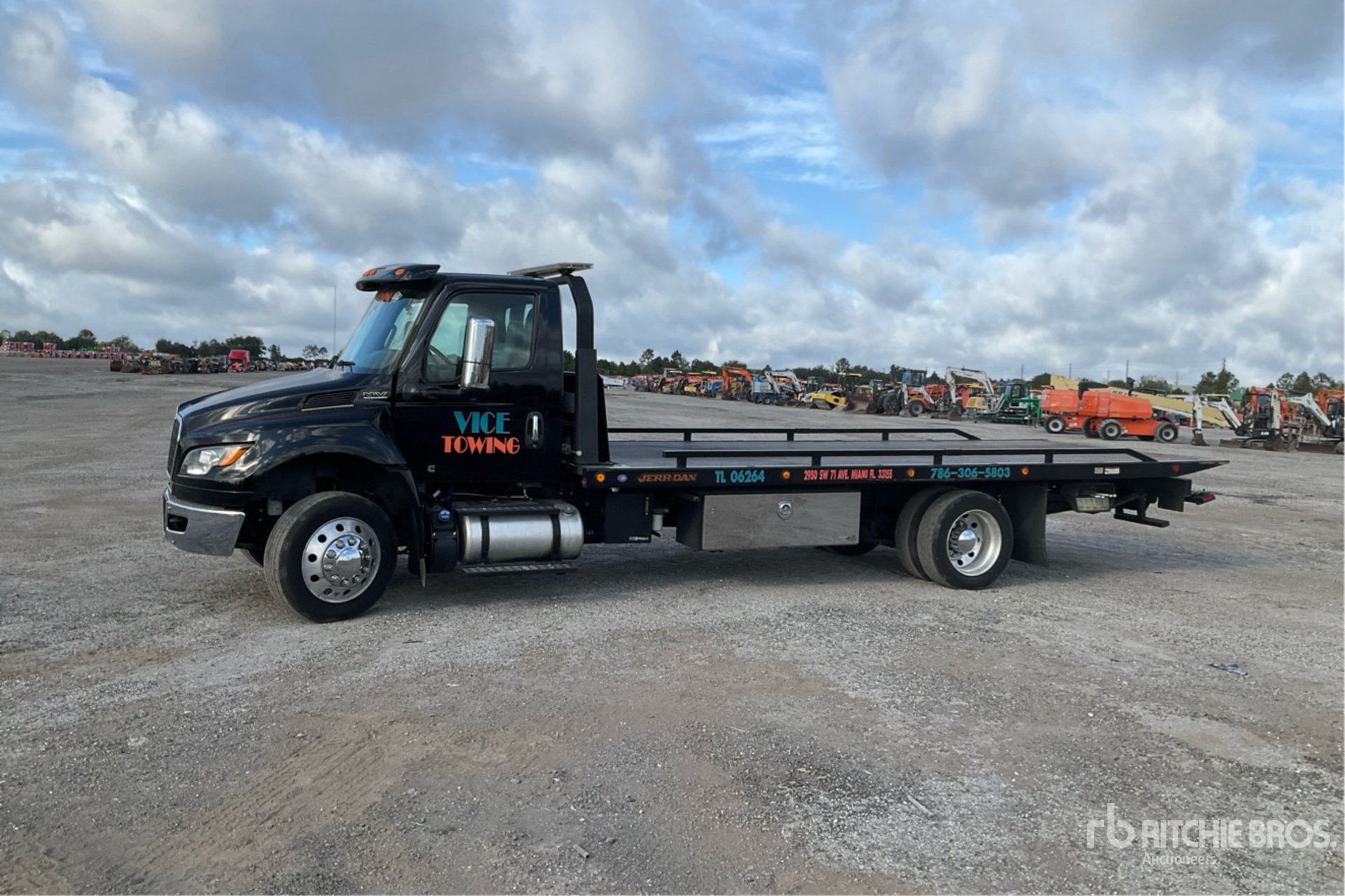 Cummins B6.7 260 6 Cylinder 6.7 L Diesel 260 hp Engine, 2022 US EPA Label, Requires Diesel Exhaust Fluid, 9010 Engine hrs, Exhaust Brake, Allison Automatic Transmission, 8000 lb Front Axle, 17500 lb Rears, 25500 lb GVWR, Air Ride Cab, Aluminum Outer Wheels, 255/70R22.5, Air Ride Suspension, 216 in Wheelbase, PTO, Jerrdan 22SRR6T-W-LP Rollback Body, 22 ft x 102 in Bed, Ramsey HD234 8000 lb Winch, Hydraulic Wheel Lift