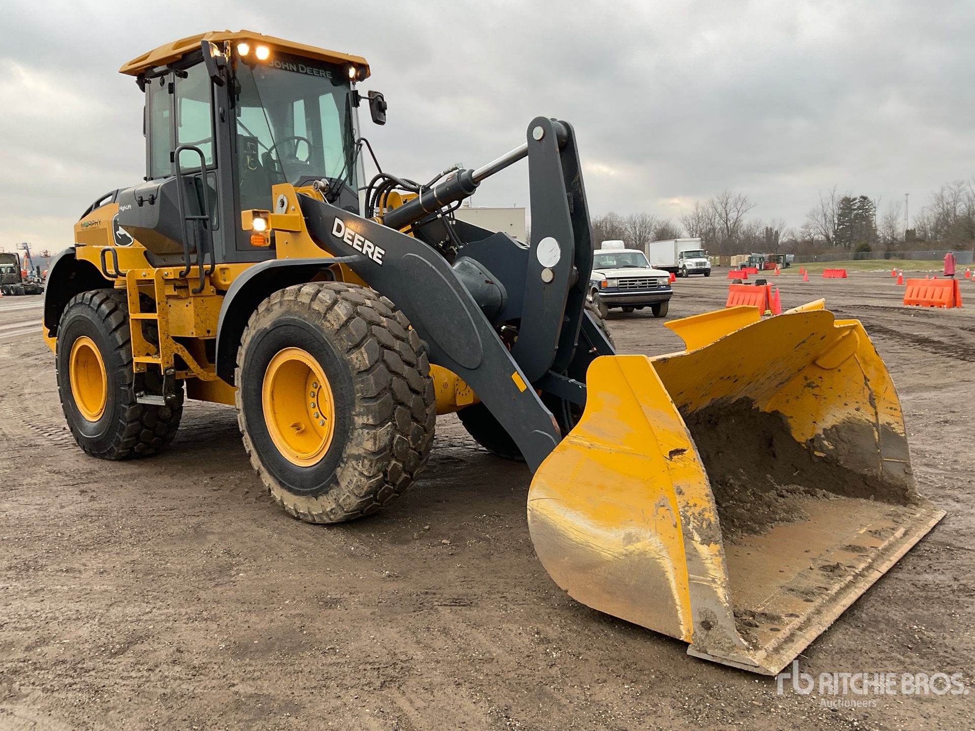 Enclosed Cab, Air Conditioner, Rear View Camera, Air Ride Seat, Ride Control, Loadrite On-Board Scale, Tier 4, Auxiliary Hydraulics, Hydraulic Coupler, 100 in Bucket, 20.5R25 Tires